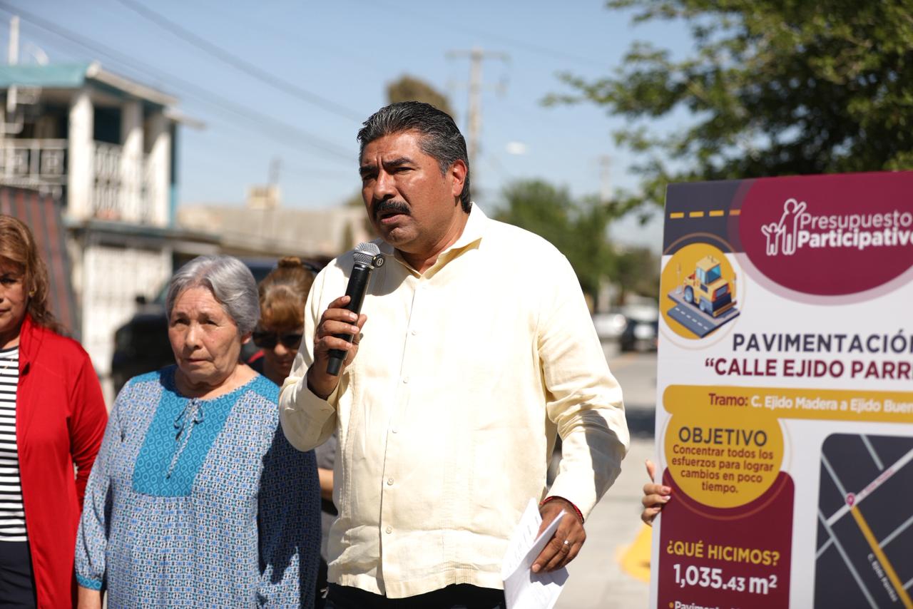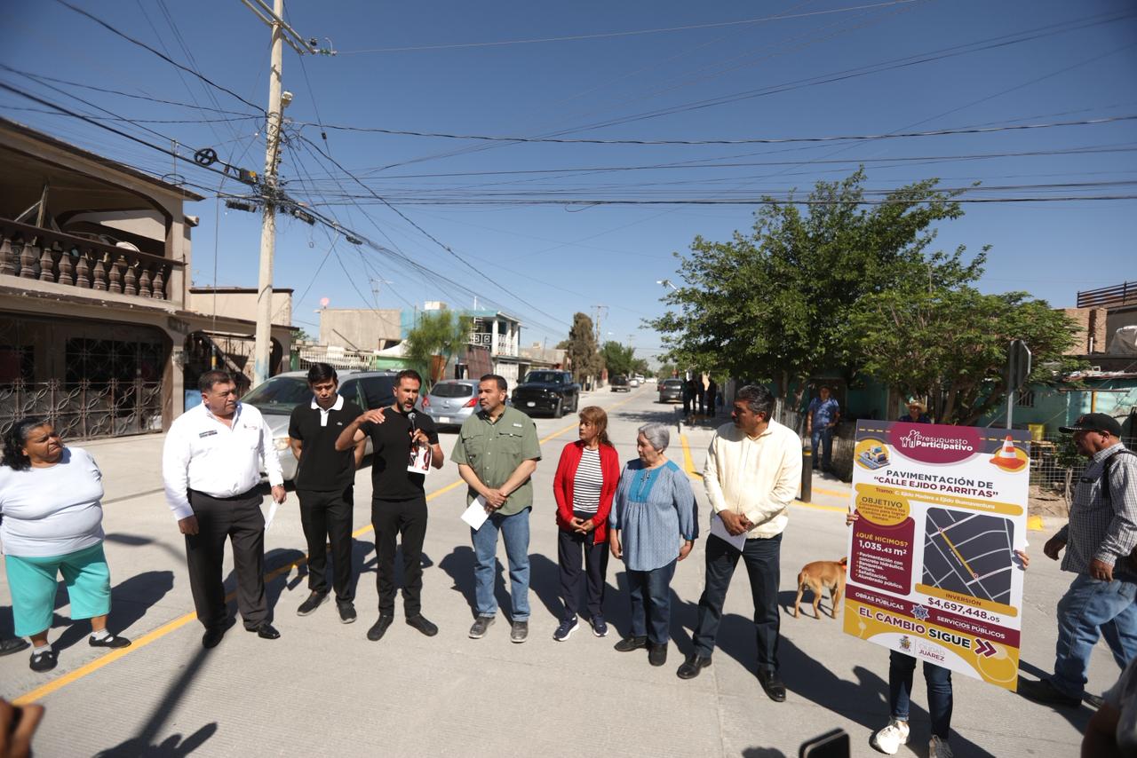 Como parte de las obras del Presupuesto Participativo, este día el Presidente Municipal, Cruz Pérez Cuéllar entregó la construcción de la calle Ejido Parritas, ubicada en la colonia Terrenos Nacionales Sur.