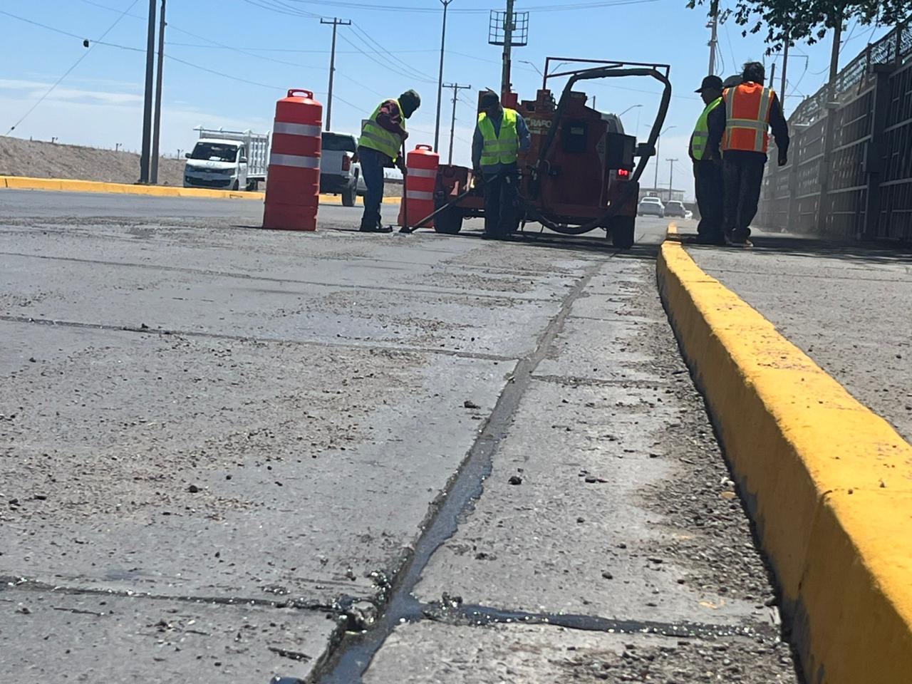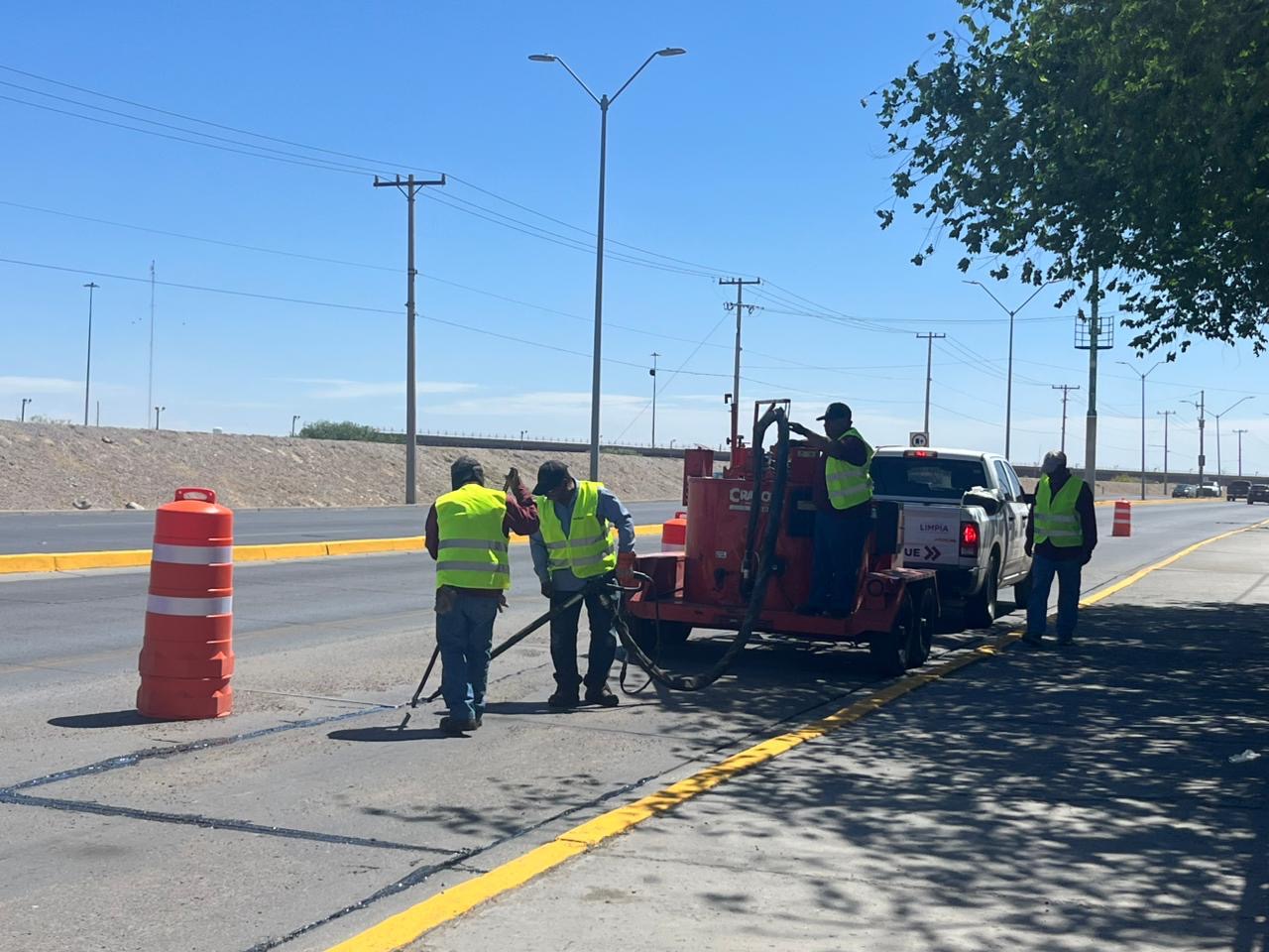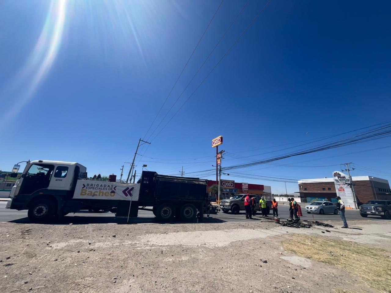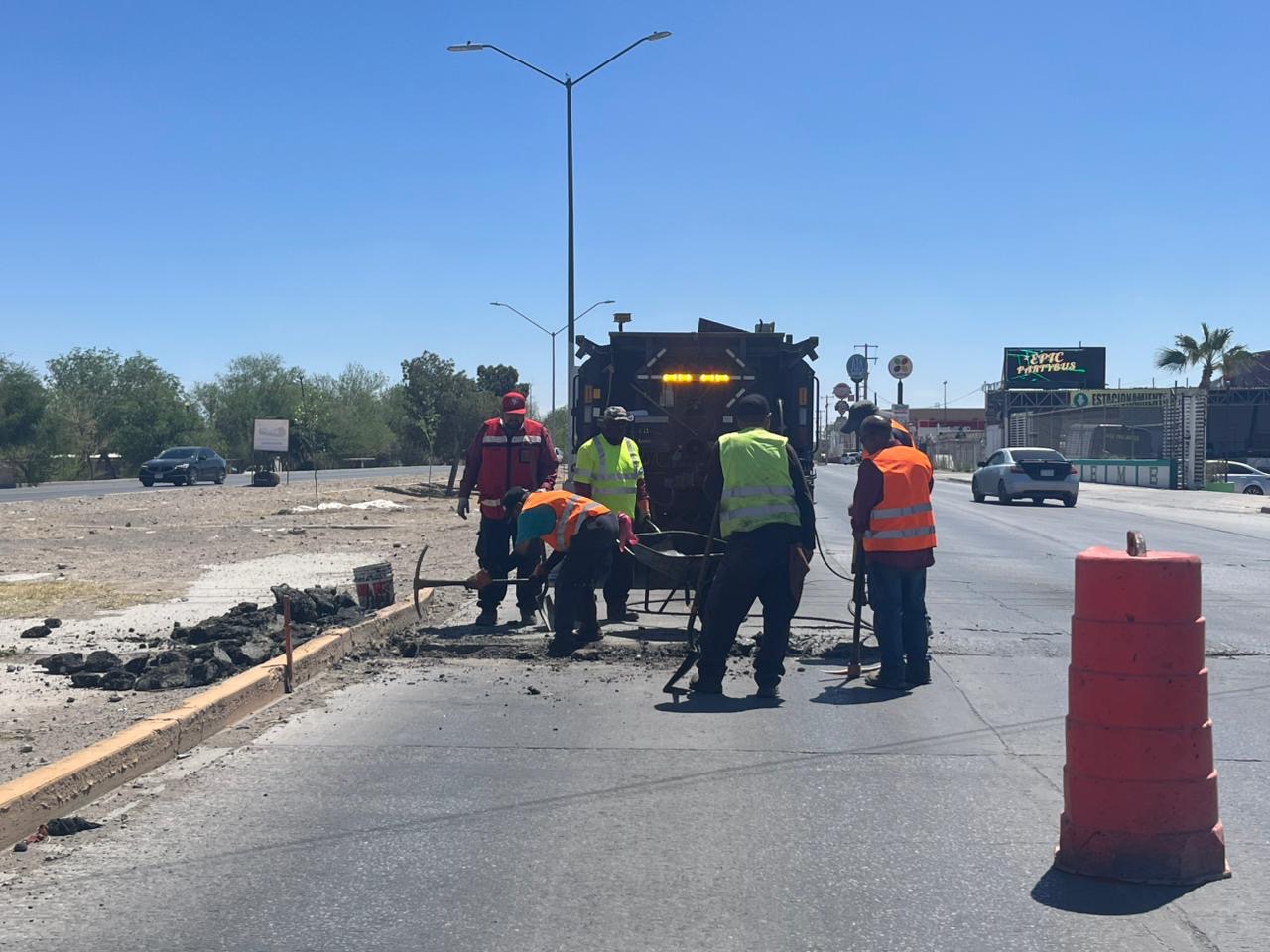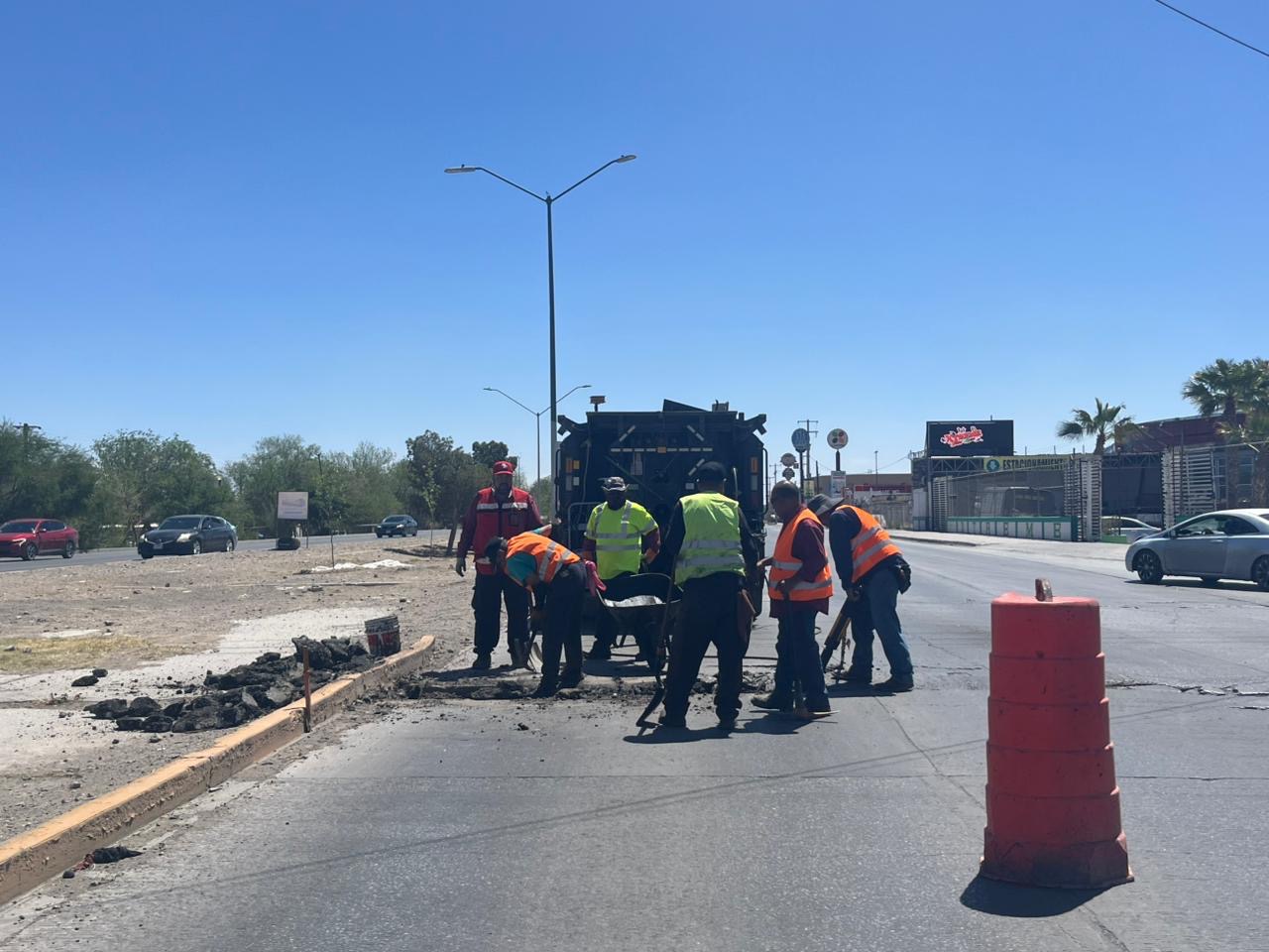 Como parte de las acciones de mejoramiento de vialidades, la Dirección General de Obras Públicas permanece trabajando en el boulevard Juan Pablo II con acciones de calafateo y bacheo en el tramo correspondiente de Francisco Villarreal Torres hasta la avenida Rafael Pérez Serna.