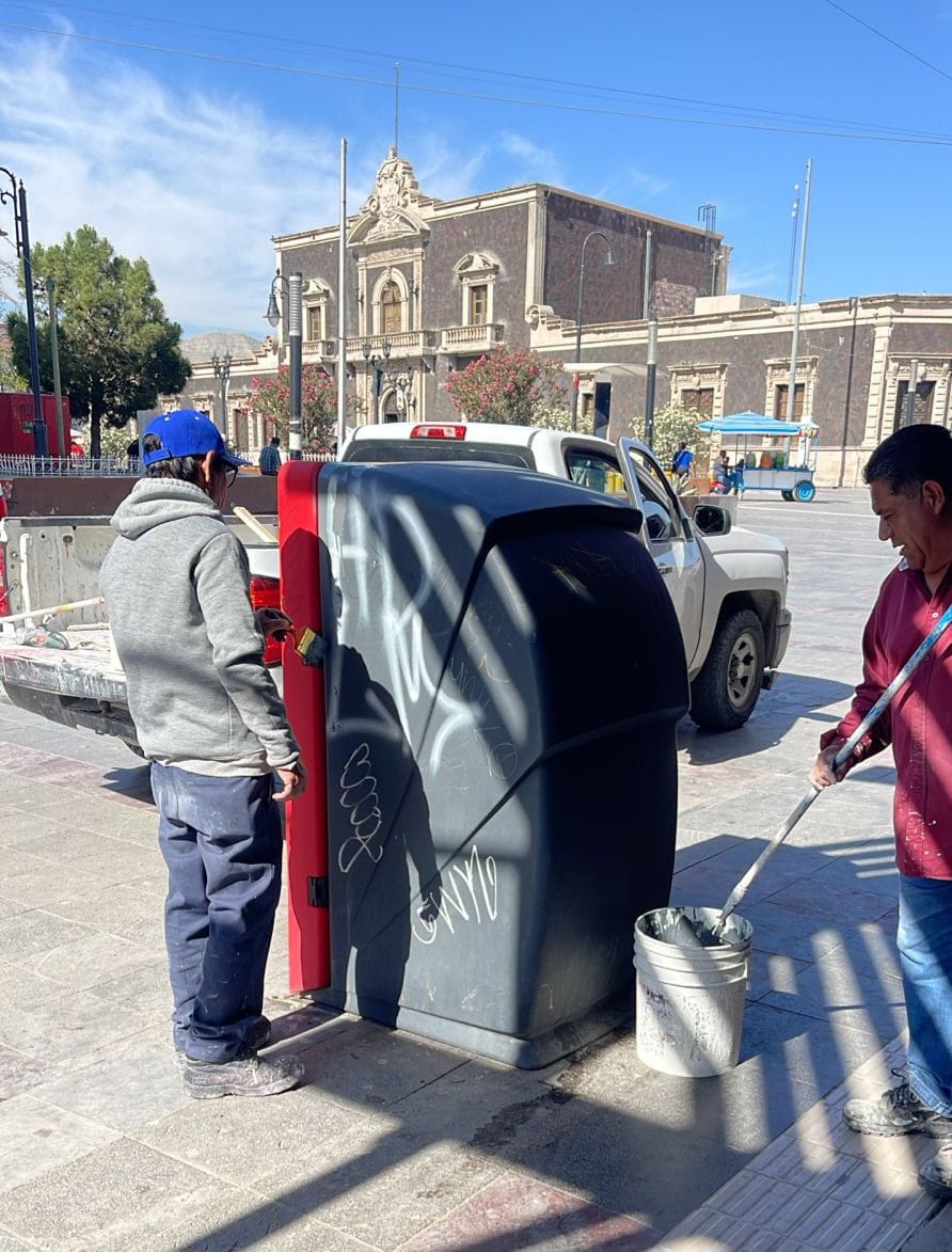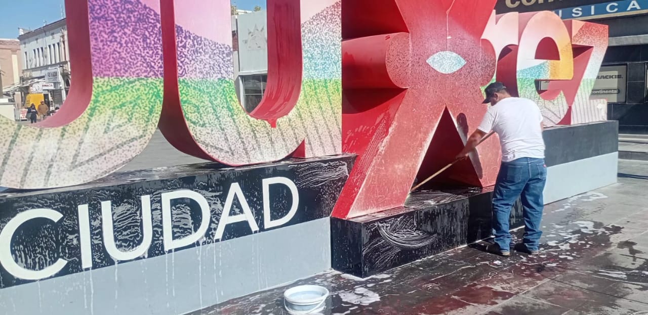 El titular de la dependencia, Gibran Solís Kanahan, informó que se llevan a cabo trabajos de pintado en los contenedores de basura ubicados sobre la avenida Juárez, así como labores de remozamiento en las letras monumentales de “Juárez”, particularmente en la parte posterior, con el objetivo de mantenerlas en buen estado para quienes visitan este punto emblemático.