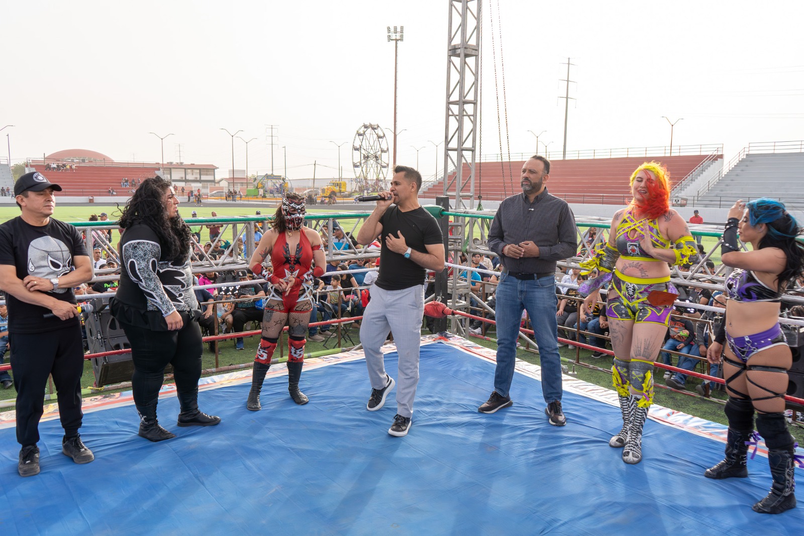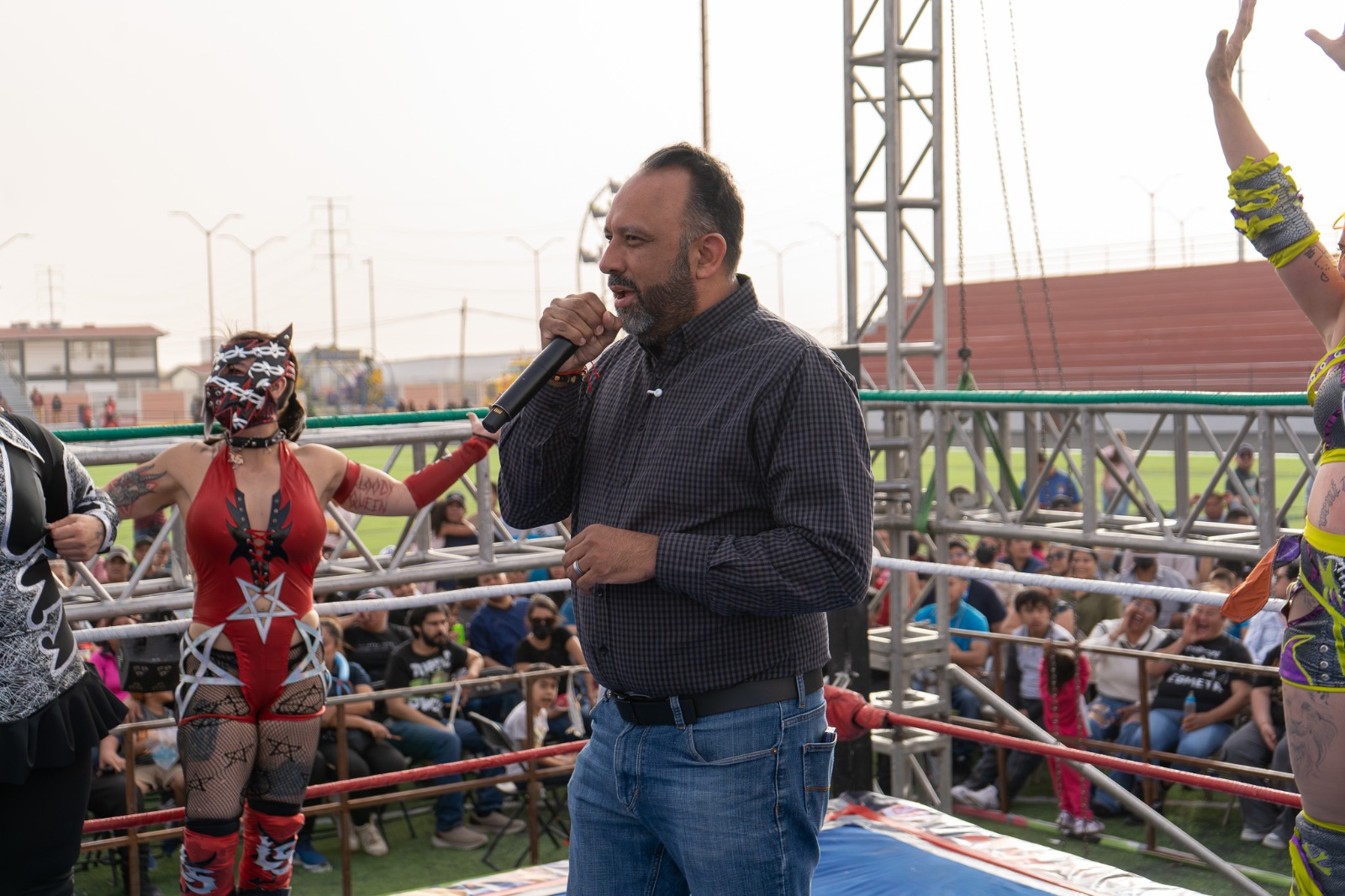 Con la intención de celebrar el Día del Niño y fomentar la convivencia familiar, el Gobierno Municipal, a través del Instituto Municipal del Deporte y Cultura Física de Juárez, realizó el festival de lucha libre “La Gran Fiesta del Ring”.