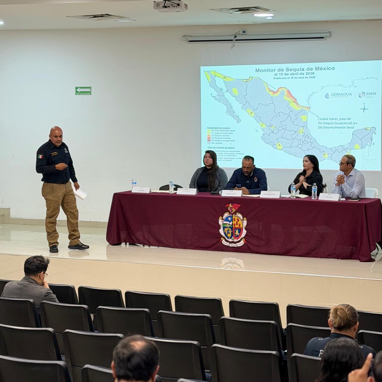 Durante la reunión se revisaron las estimaciones de temperaturas para los meses de mayo, junio y julio, así como el comportamiento del monitoreo de sequía en el país. En este sentido, se informó que el municipio de Juárez presentó una mejoría significativa al pasar de la categoría de Sequía Excepcional (D4) a Anormalmente Seco (D0), derivado de las precipitaciones registradas desde junio de 2025.