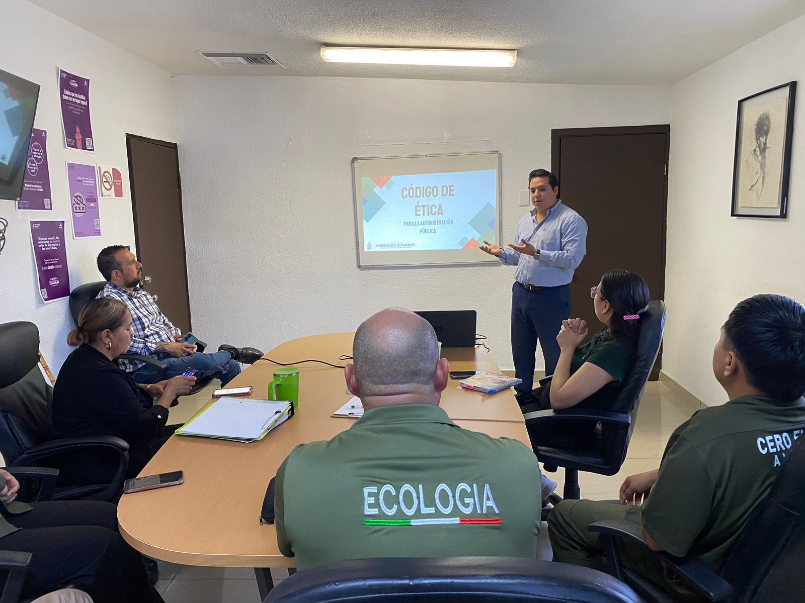 Personal de la Dirección de Derechos Humanos acudió a las instalaciones de la Dirección de Ecología para impartir una sesión formativa sobre el Código de Ética, dio a conocer el titular de la dependencia, Santiago González Reyes.
