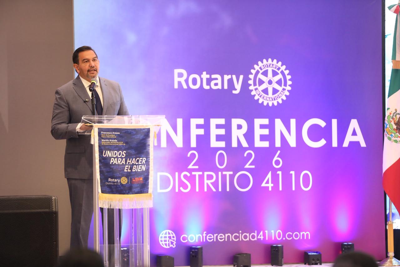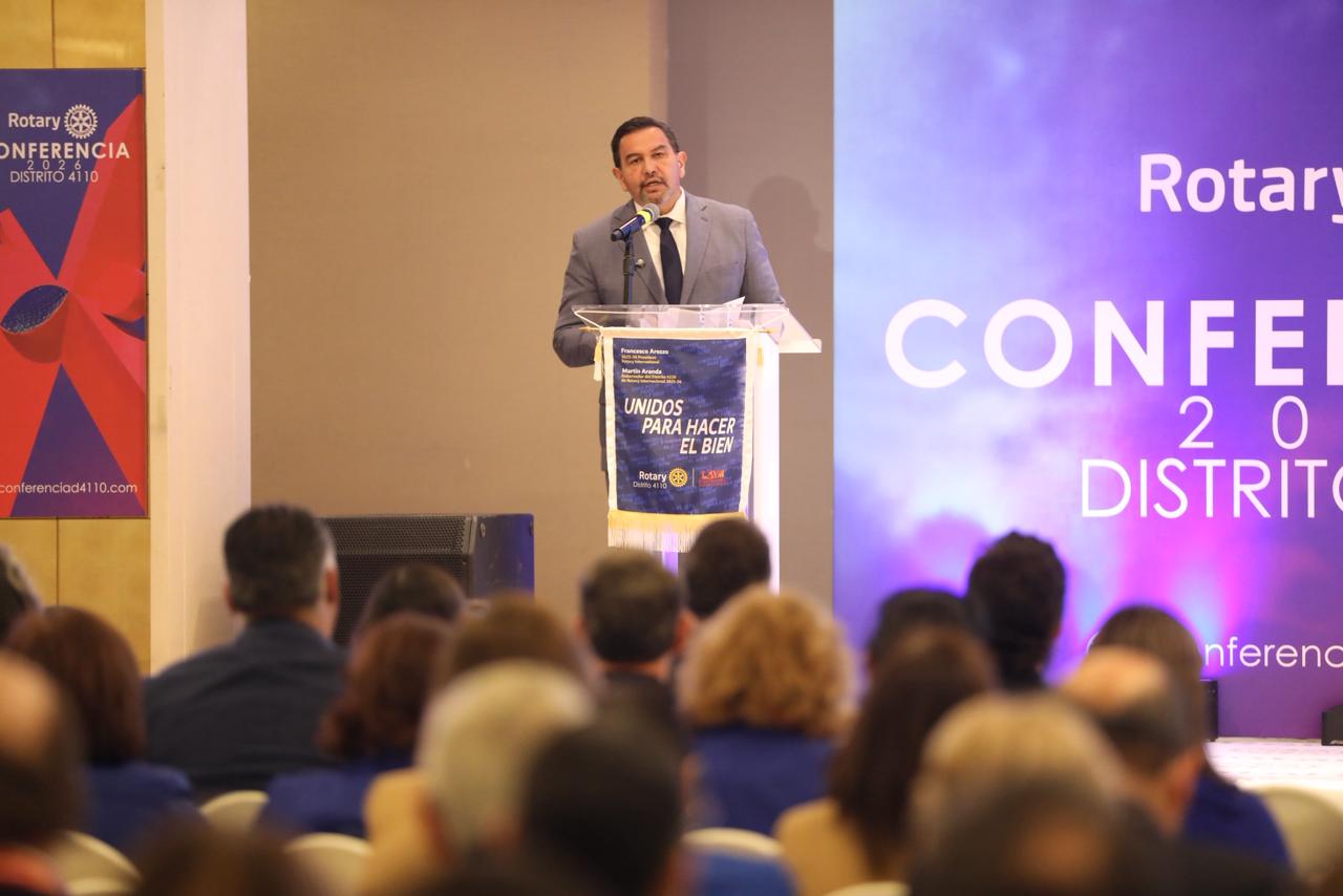 El Presidente Municipal, Cruz Pérez Cuéllar, participó en la Conferencia 2026 del Distrito 4110 de Rotary, donde reconoció el impacto de los clubes Rotarios en la comunidad y destacó la colaboración entre sociedad civil y Gobierno.
