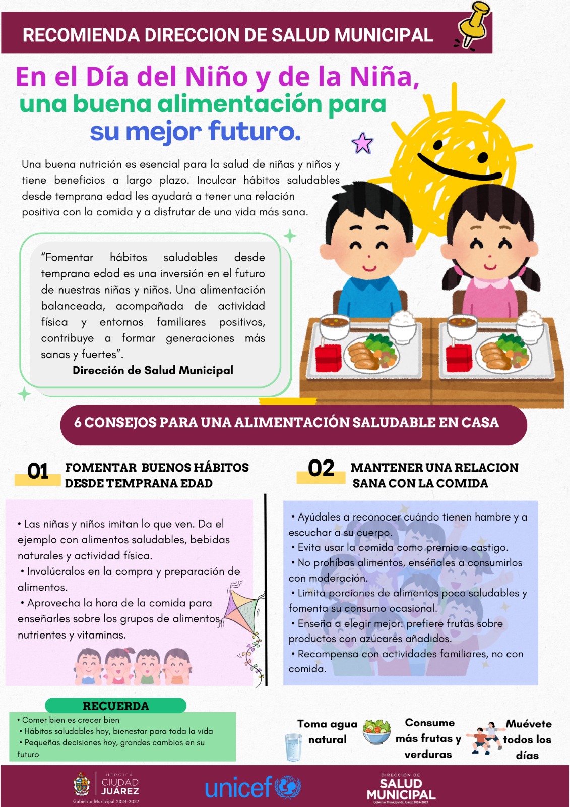 En el marco del Día del Niño y de la Niña, la Dirección de Salud Municipal hizo un llamado a los padres de familia y cuidadores a fortalecer una alimentación balanceada desde la infancia, como base para el desarrollo integral de niñas y niños en Ciudad Juárez.