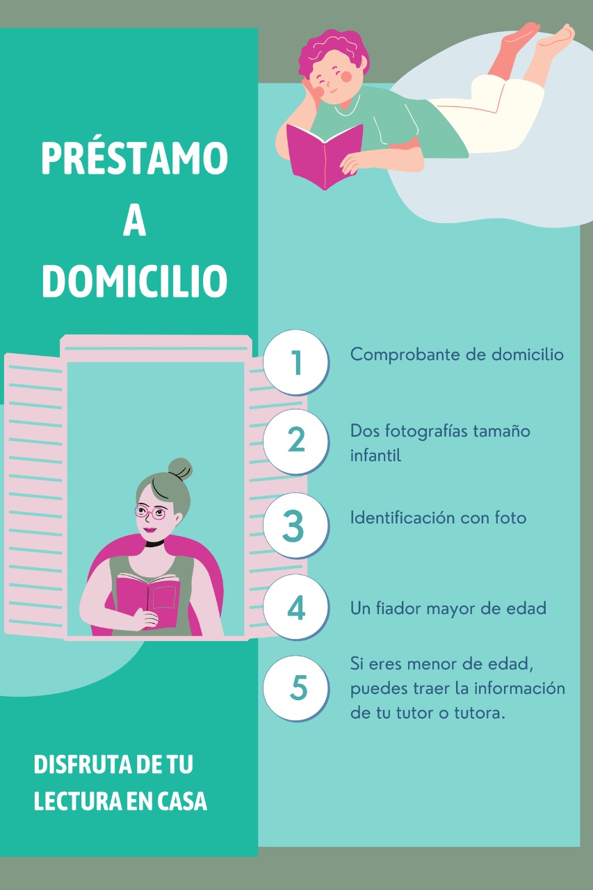 Con el propósito de que las personas puedan disfrutar de la lectura en la comodidad de sus hogares, la Biblioteca Pública Municipal Arturo Tolentino hace préstamo de libros a domicilio.