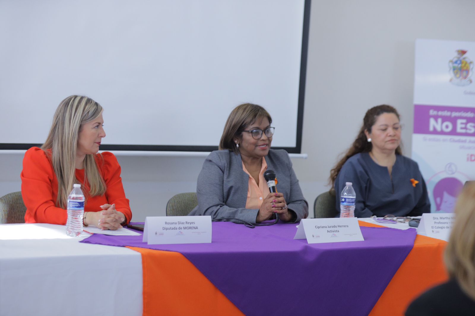 Como ponentes se contó con la participación de la diputada Rosana Díaz; la defensora de los derechos de las mujeres Cipriana Jurado Herrera y la profesora investigadora del Colegio de la Frontera Norte, Martha Cecilia Miker Palafox.