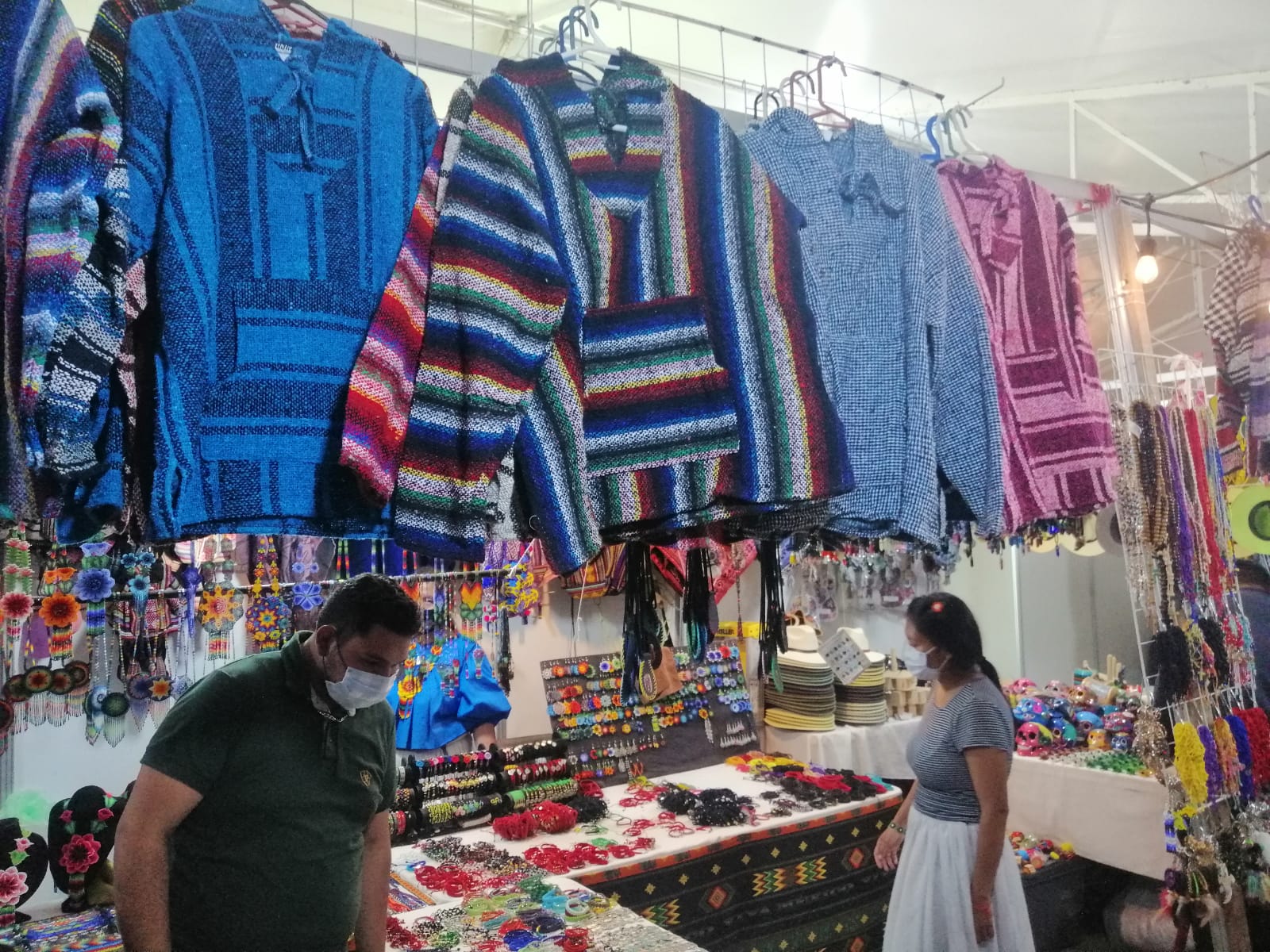 En esta zona se encuentra también el módulo ocupado por Jairo García, artesano del estado de México, proveniente de la comunidad mazahua asentada frente al nevado de Toluca, quien ofrece en venta todo tipo de prendas típicas mexicanas, así como alfarería.