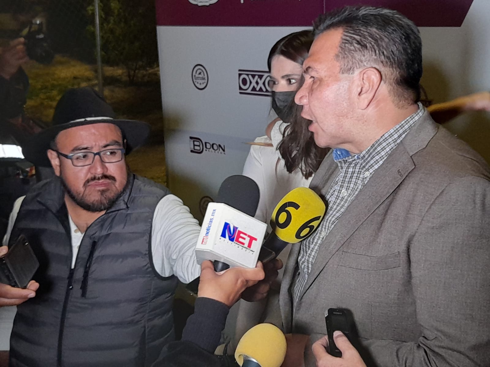 Al subir al escenario del Teatro del Pueblo, el alcalde entregó un reconocimiento a la estación de radio Zeta por su 20 aniversario que fue recibido por los locutores Pollito y Juan José.