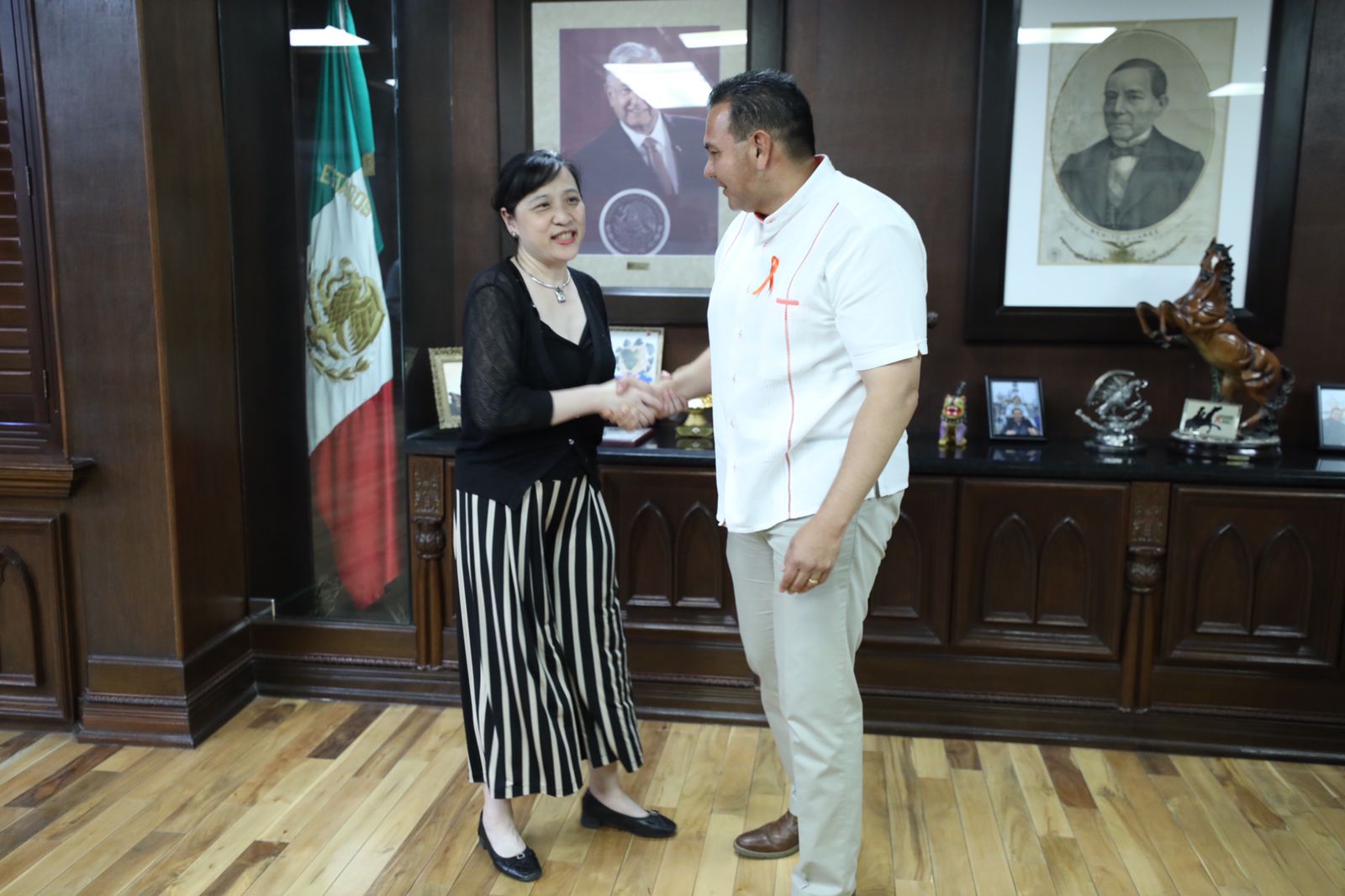 En su despacho ubicado en la Unidad Administrativa Benito Juárez, sede de la Presidencia Municipal, el alcalde recibió a la diplomática y agradeció su presencia en Ciudad Juárez, ya que contribuirá a reforzar las relaciones comerciales y económicas con China.