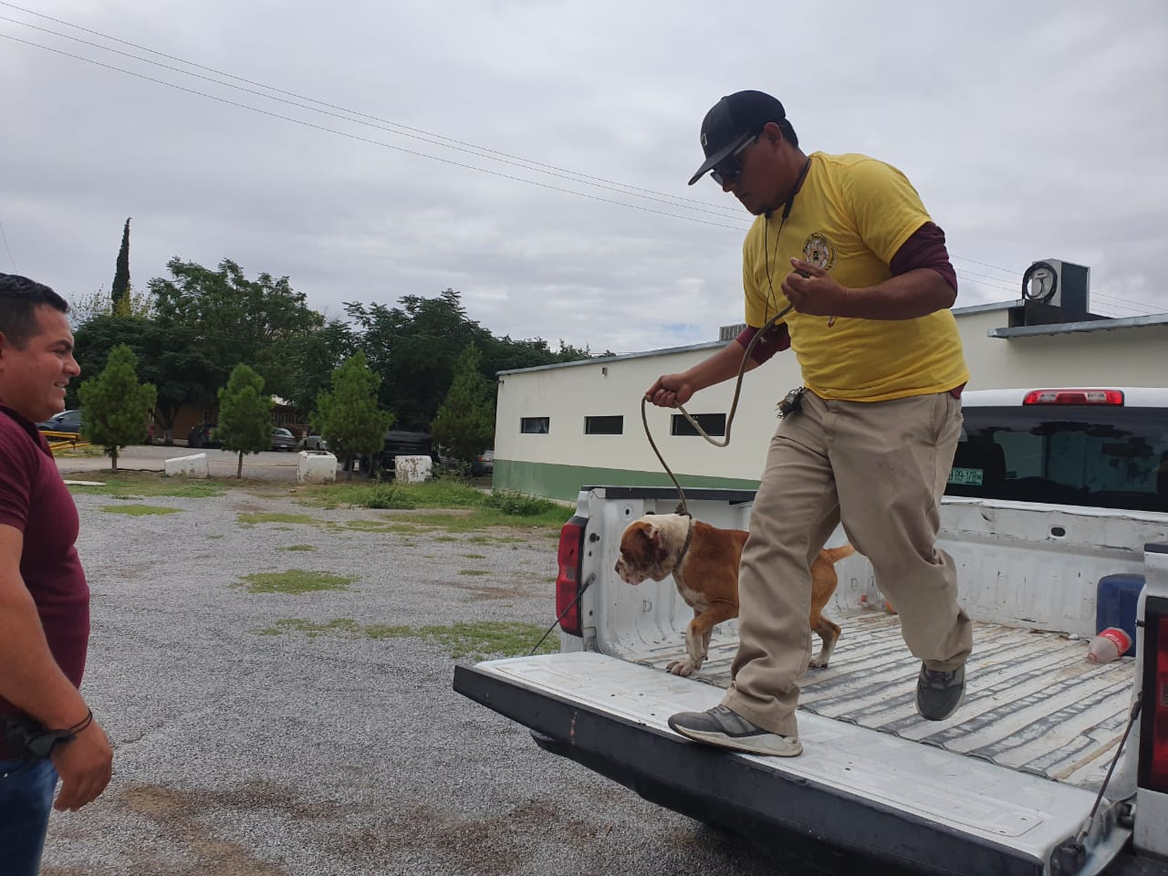 Rescatan trabajadores de Servicios Públicos a perro abandonado en terreno baldío