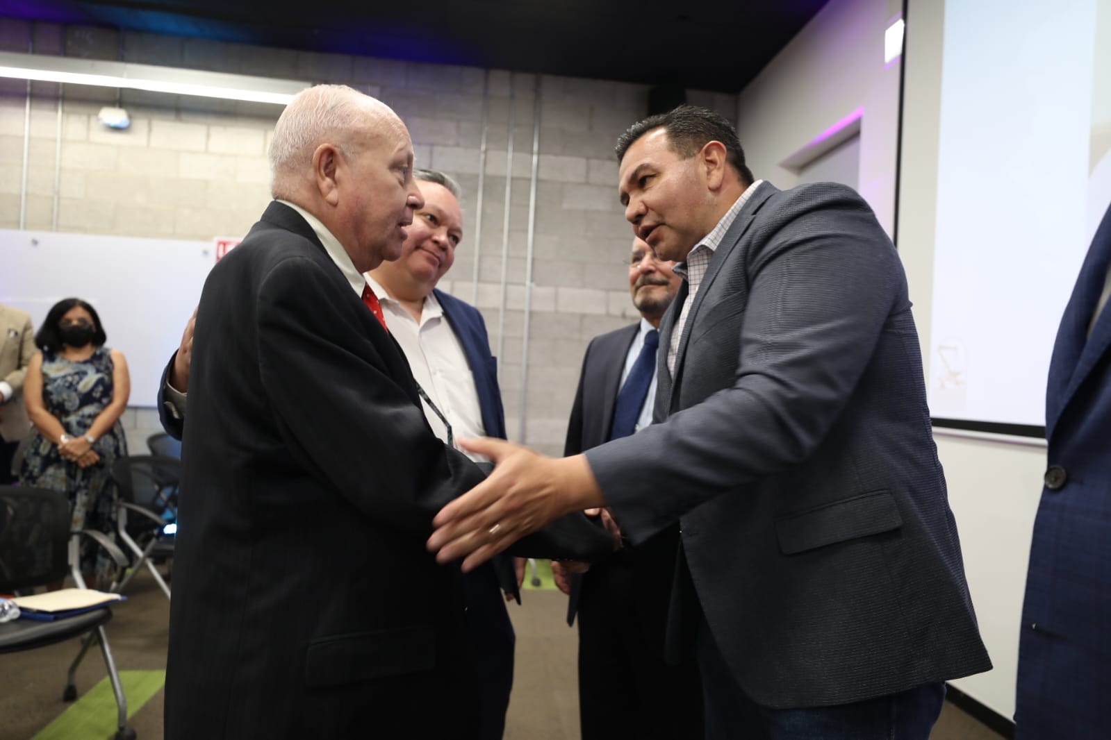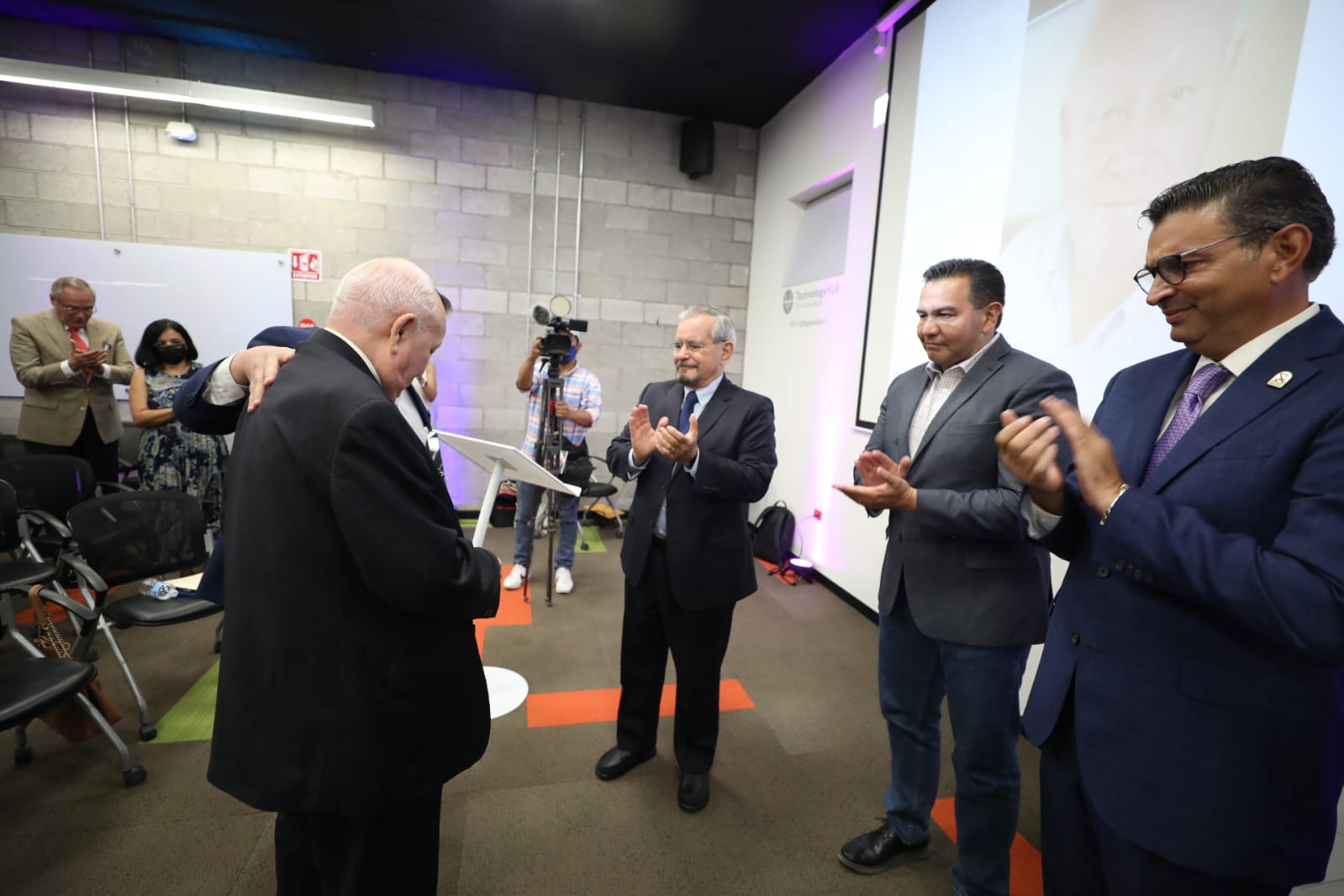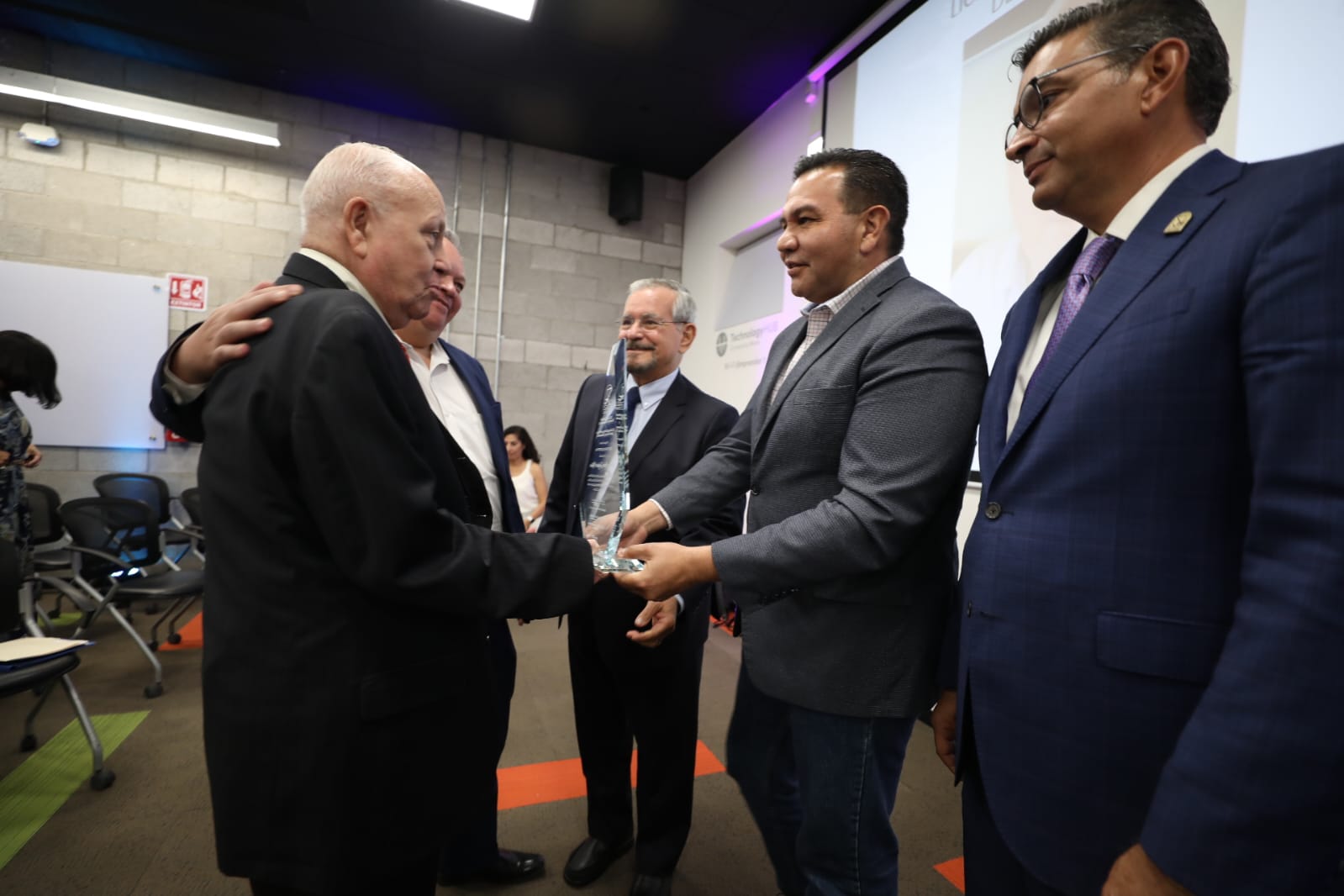 Junto con el presidente del Colegio Estatal del Notariado Chihuahuense, Fernando Rodríguez García y el director general del Notariado y Registro Público, Manuel Tabuenca, entregaron un reconocimiento al notario Delgado Muñoz por su trayectoria y aporte a la función del notariado, quien tomó la decisión de retirarse de esta actividad.