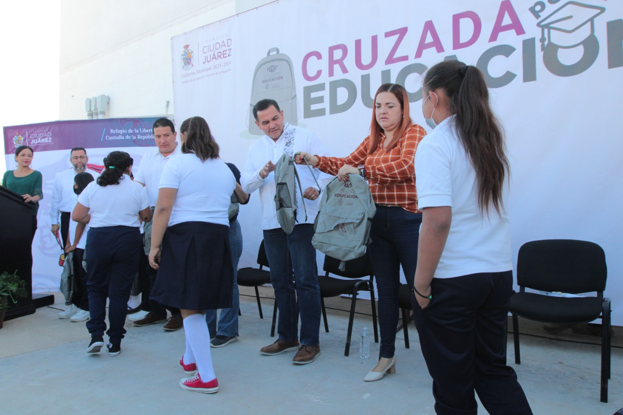 Durante el evento, el Presidente Pérez Cuéllar entregó mochilas y últiles escolares a los alumnos de la Escuela Primaria Ricardo Flores Magón, mientras que Mauricio Jasiel Lucio Jurado, estudiante de esta institución, le agradeció por voltear su mirada hacia ese sector de la ciudad y contribuir a través de su proyecto en el bienestar de los niños y las niñas.