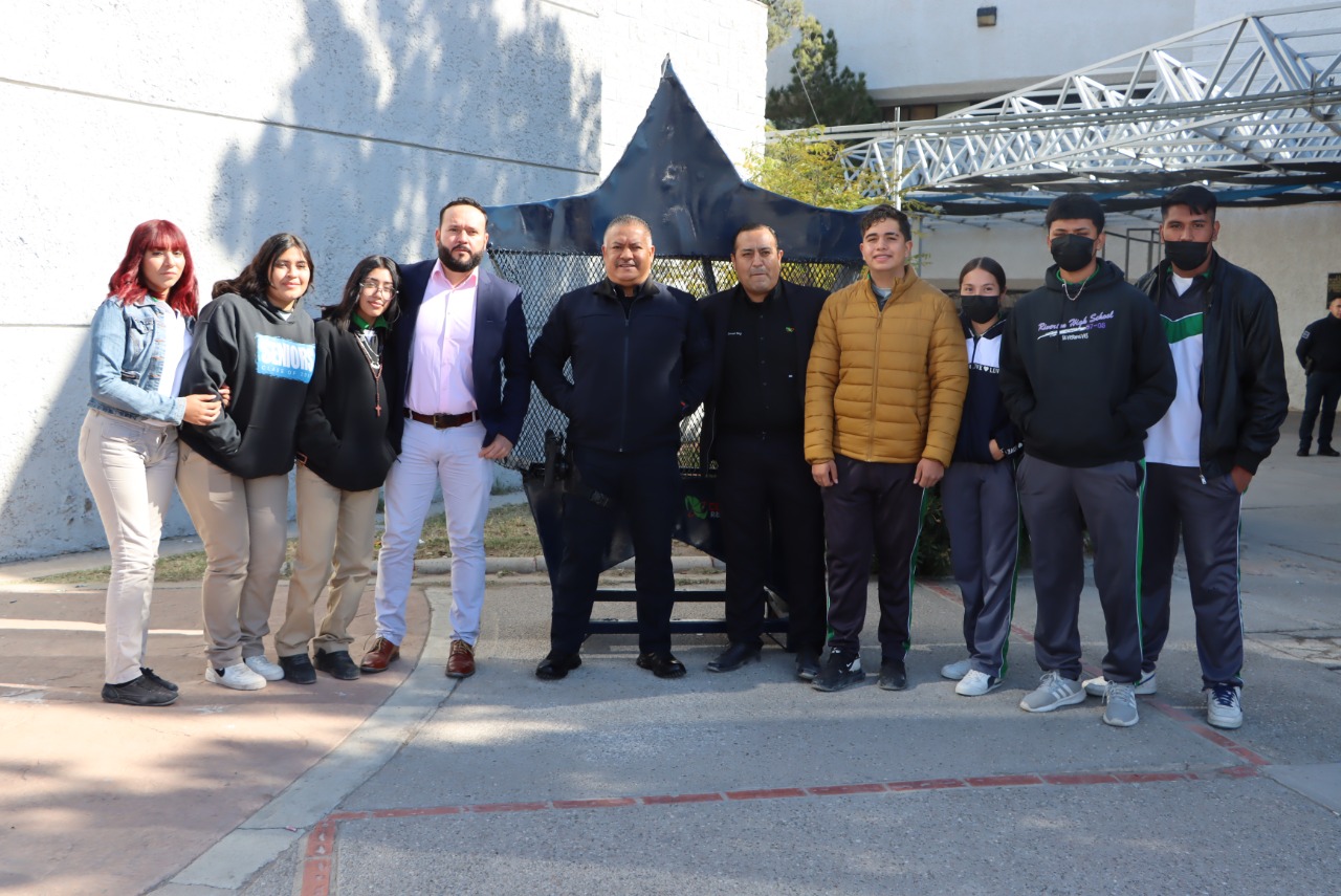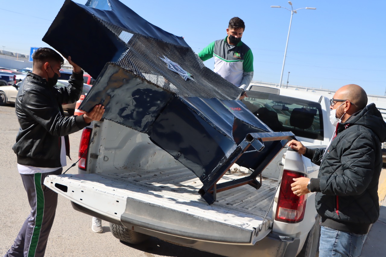 El contenedor fue elaborado por alumnas y alumnos del Colegio de Estudios Científicos y Tecnológicos del Estado de Chihuahua (CECyTECH), plantel 23, dirigidos por el Ingeniero Jovani Díaz, docente de la academia de soldadura.