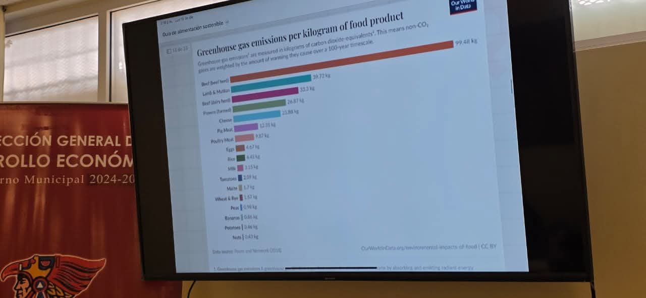 Detalló que la guía no solo orienta sobre alternativas alimenticias más sostenibles, sino que también integra información de productores de la región, lo que permite acercar a la ciudadanía a opciones locales, reducir las emisiones asociadas al transporte de alimentos y generar un impacto positivo en la economía del municipio.