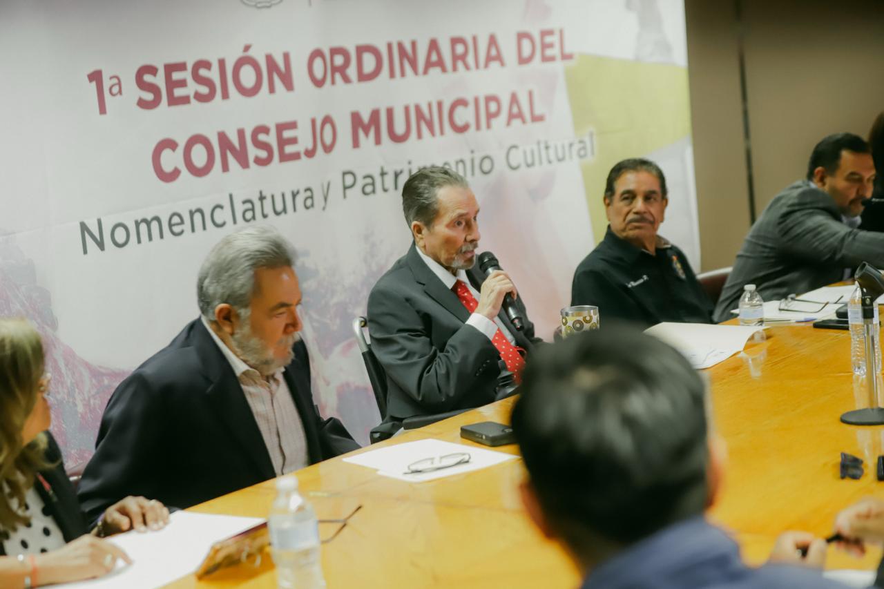 La Síndica Municipal, Ana Carmen Estrada García, tomó protesta como integrante del Consejo Municipal de Nomenclatura y Patrimonio Cultural, durante la primera sesión ordinaria de dicho órgano, la cual fue presidida por el Presidente Municipal, Cruz Pérez Cuéllar.