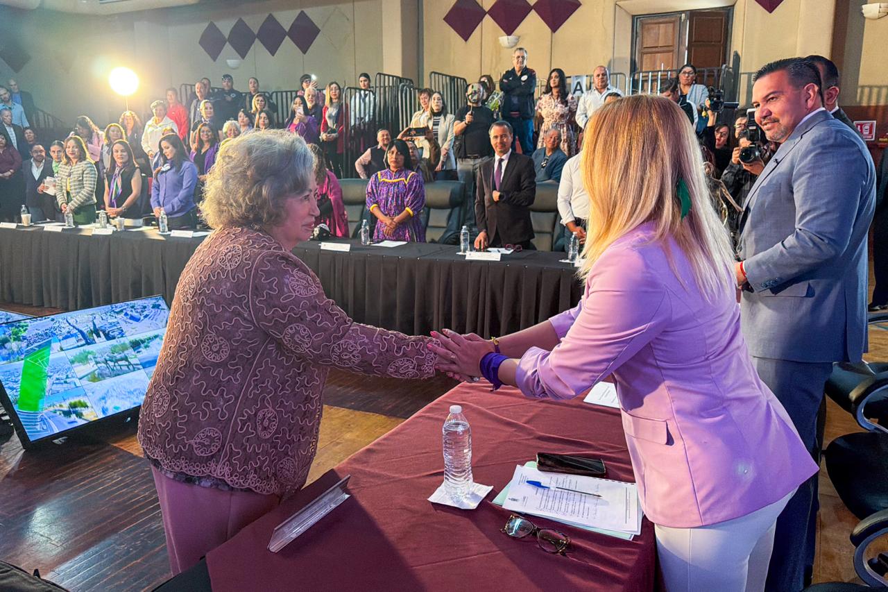 En el marco de la conmemoración del Día Internacional de la Mujer, la Síndica Municipal, Ana Carmen Estrada García, asistió este mediodía a la Sesión Solemne de Cabildo donde se realizó la entrega de la Presea Kirá 2026, el máximo galardón que otorga el Ayuntamiento a las mujeres que han transformado la vida comunitaria de la frontera.