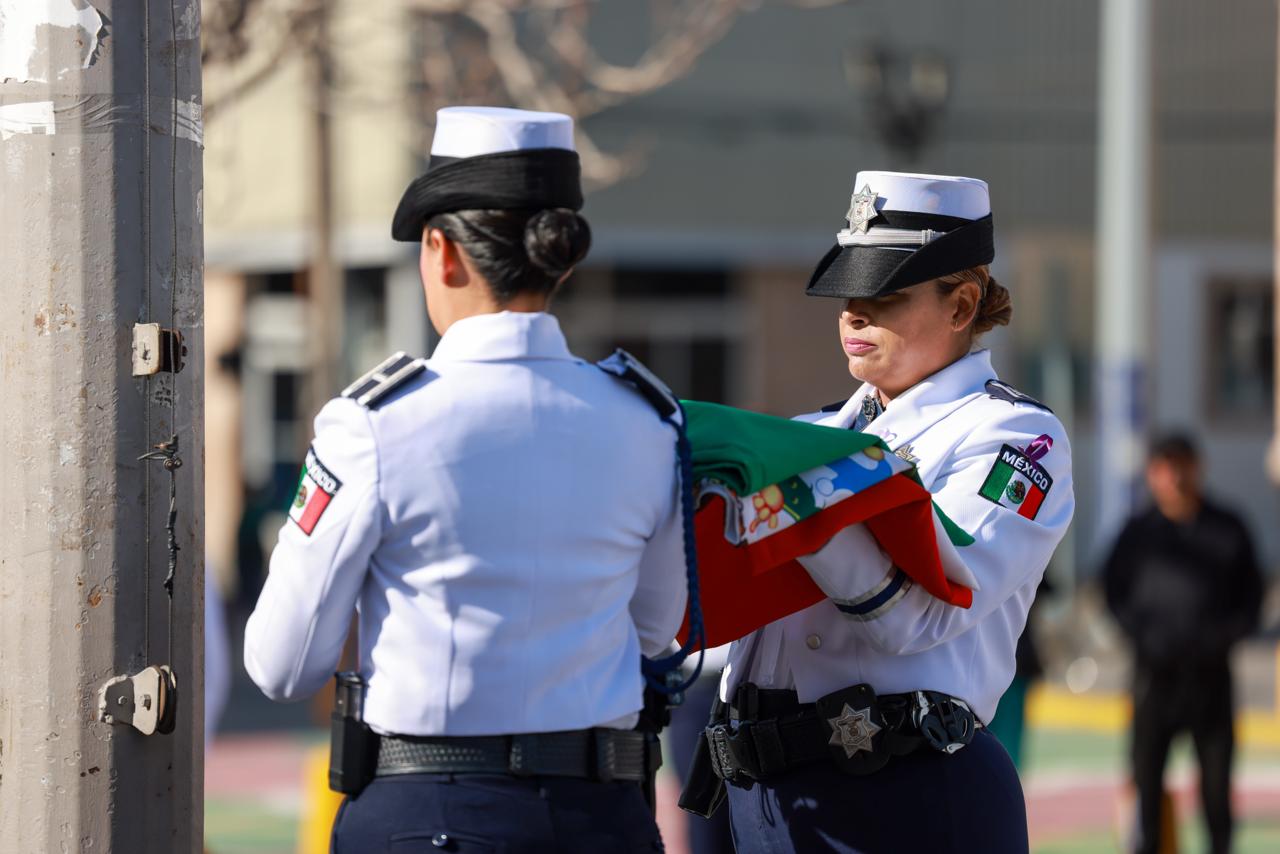 La Síndica Municipal, Ana Carmen Estrada, acudió a la Plaza del Batallón de los Supremos Poderes para enaltecer los valores patrios durante la ceremonia de izamiento de bandera correspondiente al mes de marzo.
