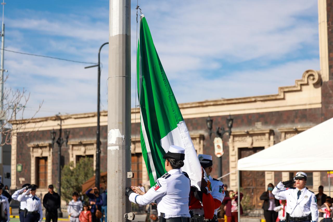 Honra Ana Carmen Estrada los símbolos nacionales en Izamiento de Bandera