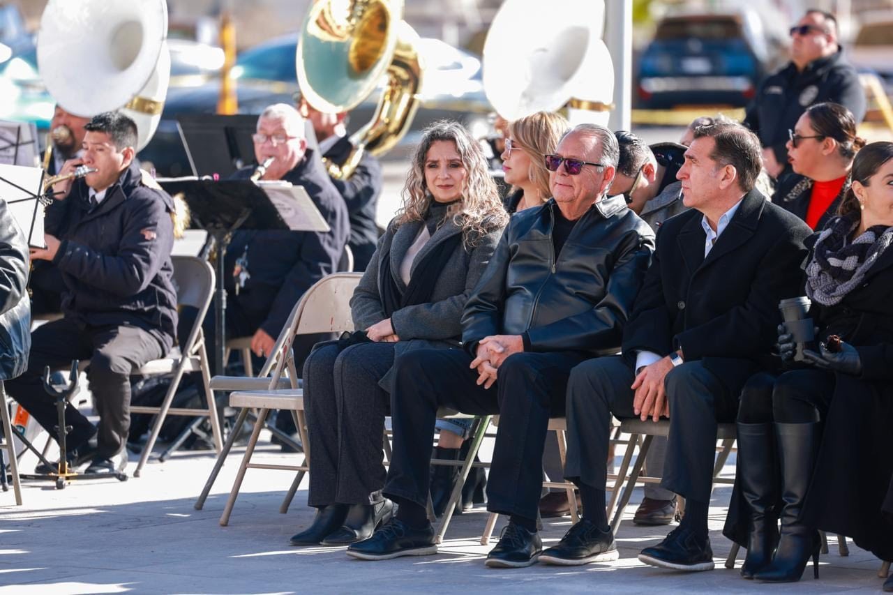 Los honores estuvieron a cargo de la escolta y banda de guerra de la Secretaría de Seguridad Pública Municipal y contaron con el acompañamiento de la banda de música del Municipio dirigida por Rafael Mendoza quienes, a su vez, interpretaron, entre otras, la pieza Cielito lindo.