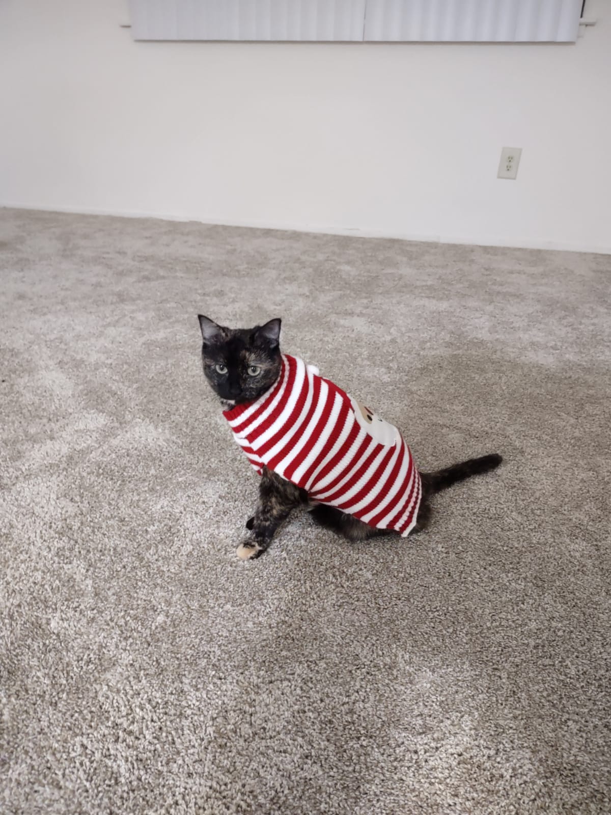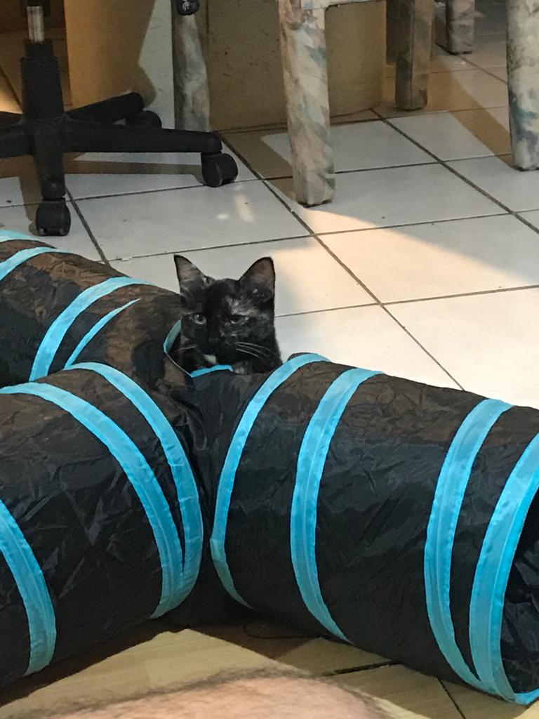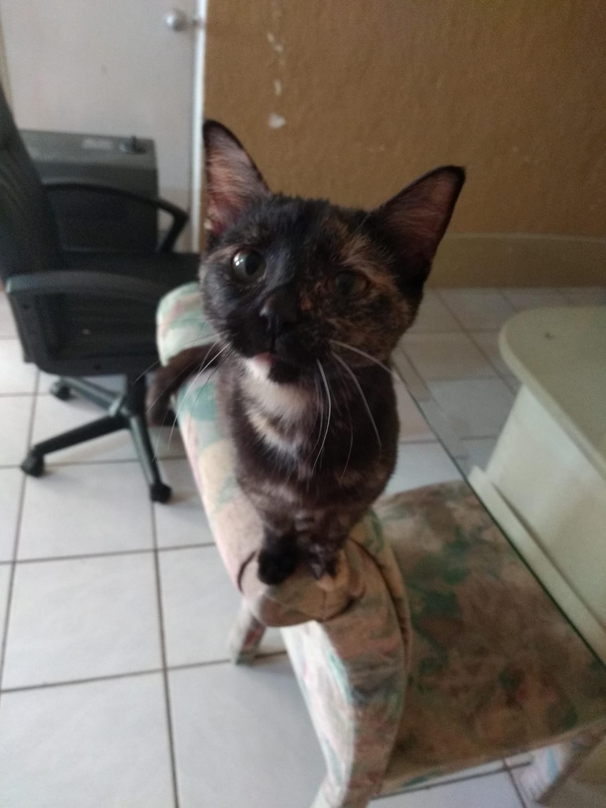 Uno de los empleados del RAMM les mostró la mayoría de los gatos que estaban en el lugar, pero les faltaba uno que estaba aparte y que a su parecer, era el más problemático y feo de todos los que estaban ese día en el albergue; se trataba de una gatita de las que se conoce como Carey, por la combinación del color de su pelo, café claro y negro.