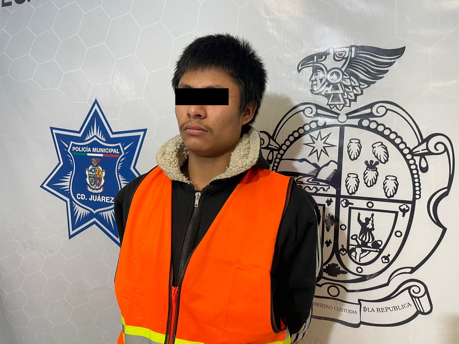 Jovany Ll. V. de 23 años, fue detenido en el cruce de las calles Avelina Gallegos y Diego Lucero, en la colonia México 68, después de agredir a su abuela al pedirle que buscara trabajo.