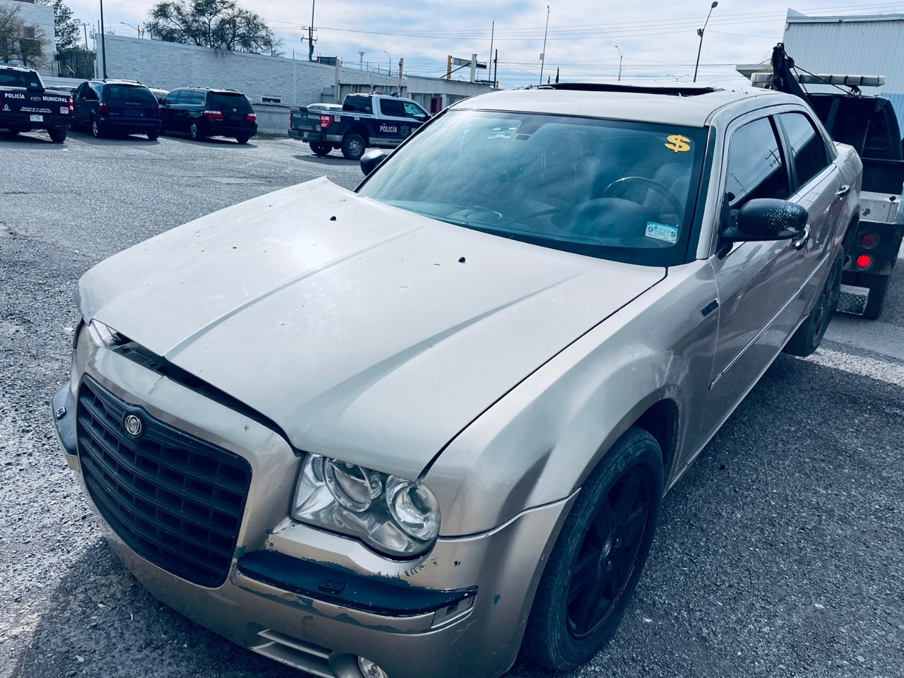 ? Así mismo, se localizó y aseguró un auto de la marca Chrysler 300, color arena, que contenía en su interior tres armas largas, dos armas cortas, tres chalecos blindados y equipo táctico.