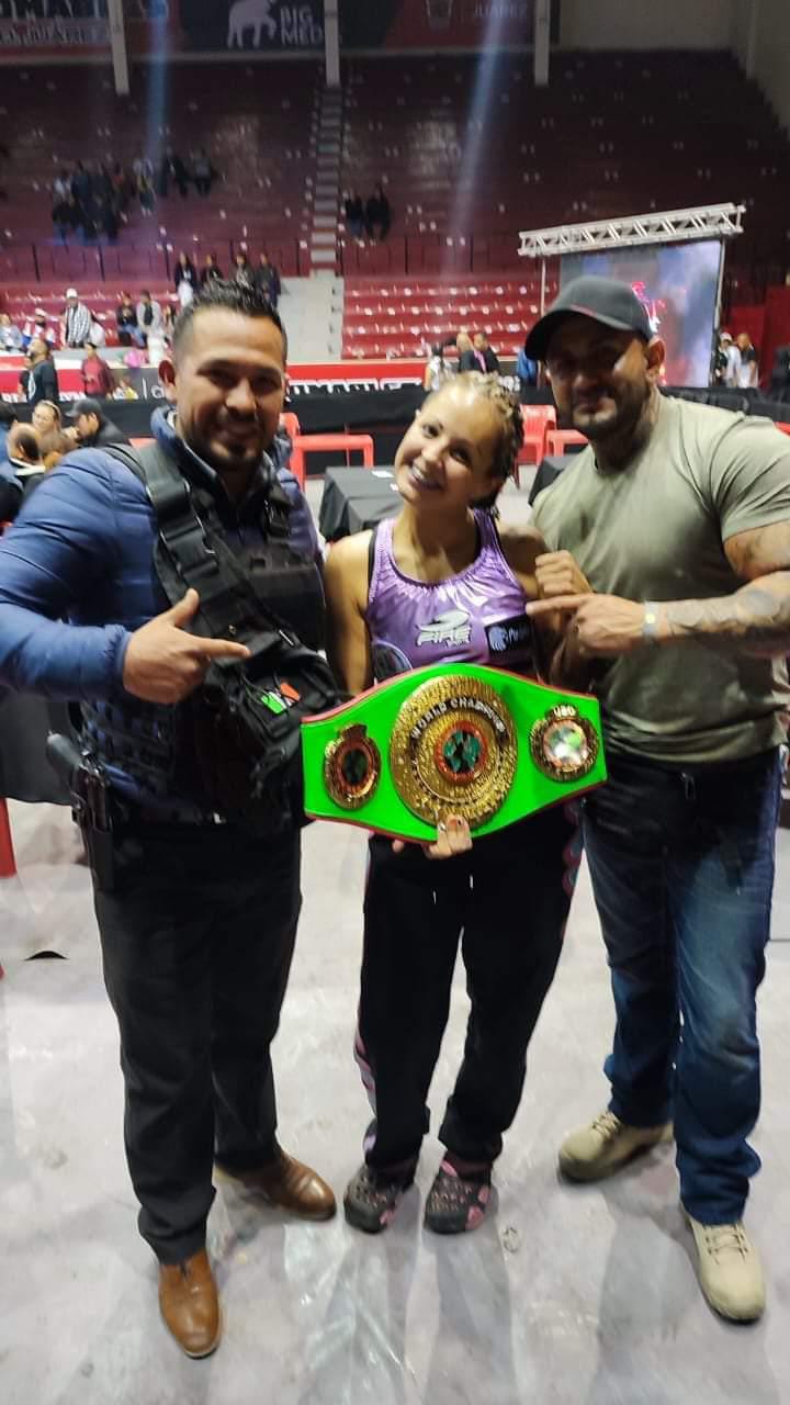 Asimismo, el pasado 27 de agosto del 2021, en Ascensión, Chihuahua, derrotó a Leticia Uribe por decisión unánime, al disputar el título por la Organización Universal de Boxeo en la categoría súper gallo.