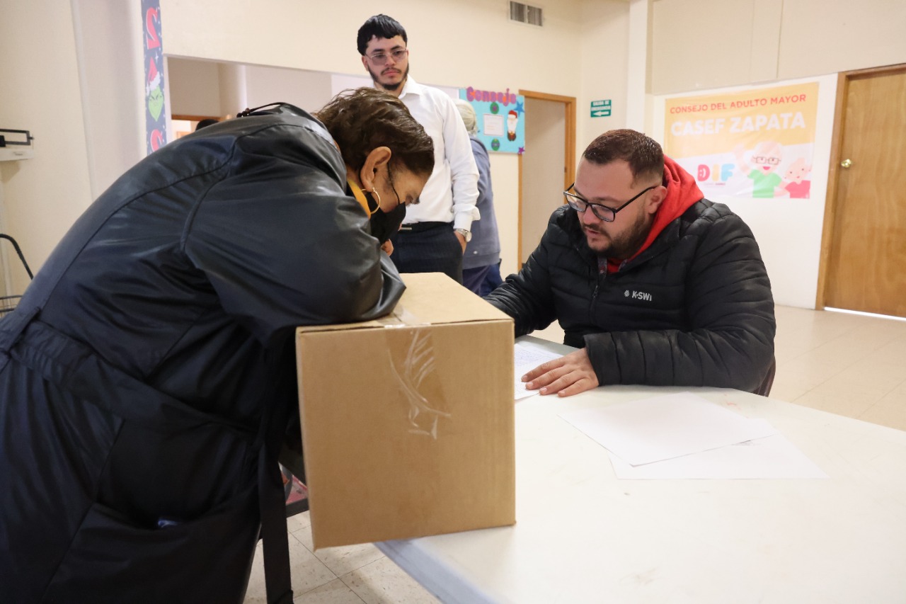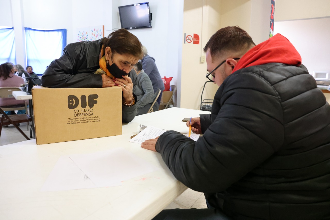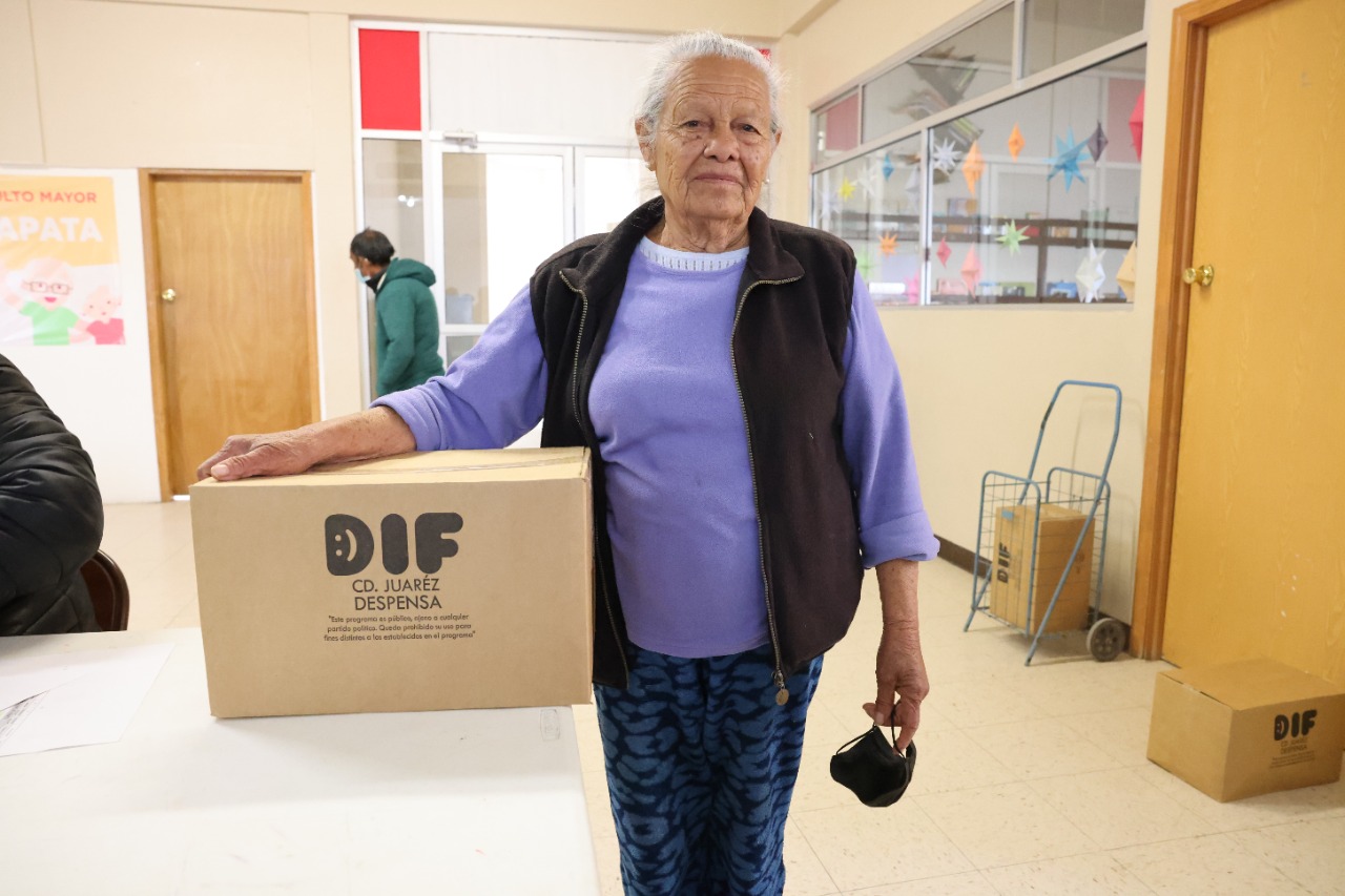 Por tercera semana consecutiva, brigadas del Sistema para el Desarrollo Integral de la Familia de Juárez, (DIF) recorren de lado a lado la ciudad en la entrega de apoyos alimentarios y chalecos invernales para las personas adultas mayores que conforman los Consejos del Adulto Mayor.