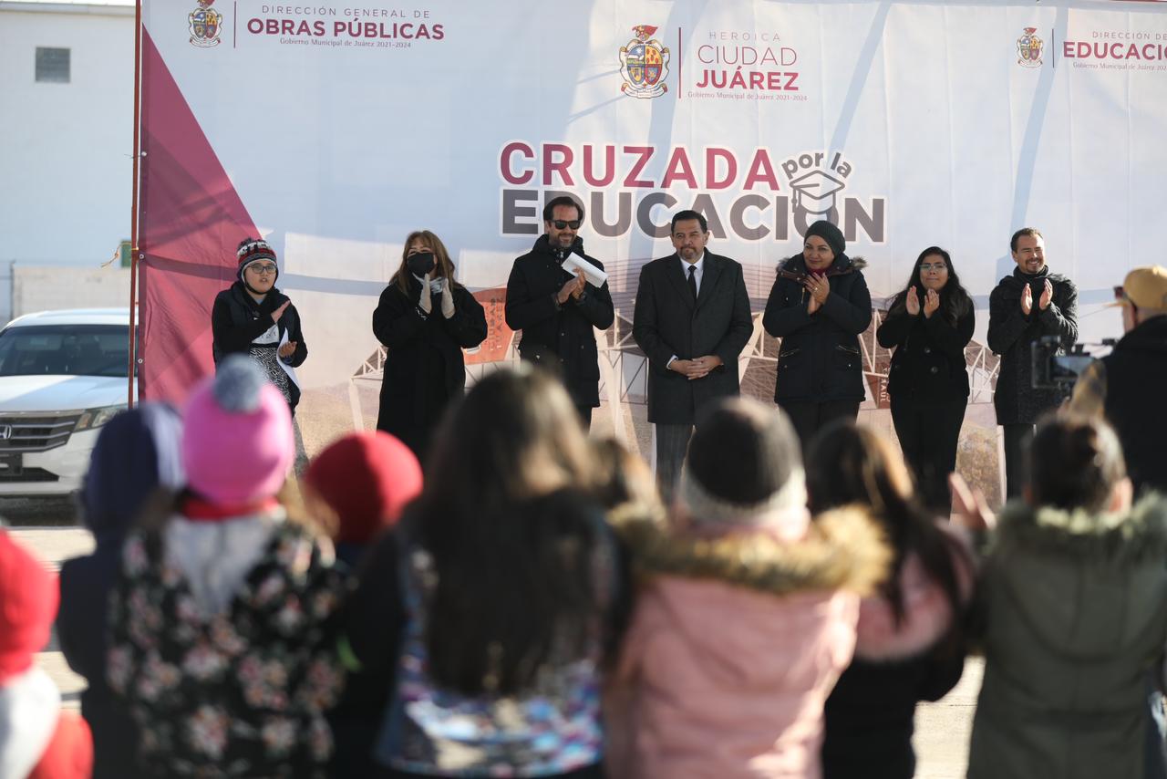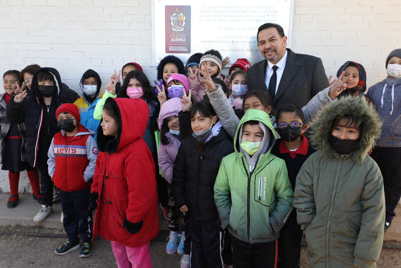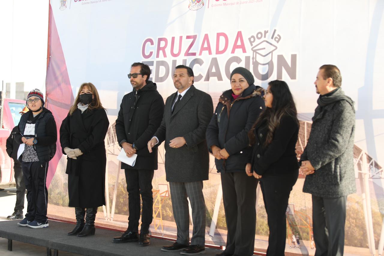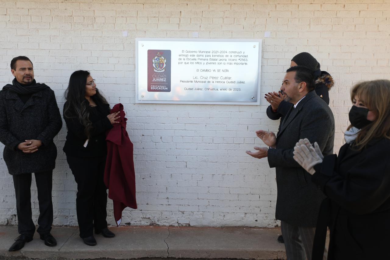 El alcalde Pérez Cuéllar destacó que se trata del cuarto, de 65 domos que son construidos y entregados por el Gobierno que encabeza, el cual le apuesta a la educación pública para ayudar a los juarenses a salir adelante.