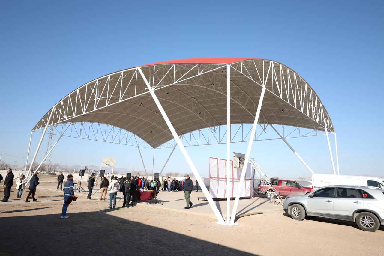 Se informó que la estructura de 30 metros de largo por 20 de ancho, cubre un área de 600 metros cuadrados y cuenta con alumbrado tipo LED, para la cual se destinó una inversión de 2 millones 397 mil 116.19 pesos.