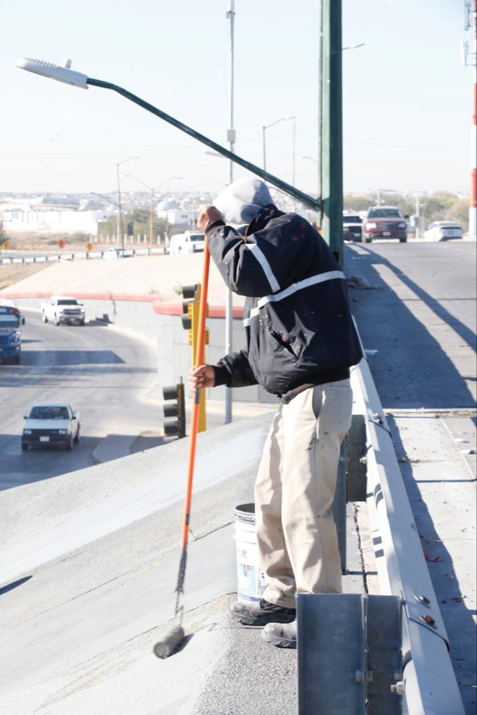 Personal de la Dirección de Limpia continúa con las labores para pintar los puentes de diversas vialidades de la ciudad, entre ellos el Puente Rotario, situado en las avenidas Tecnológico y De la Raza; el del Trébol, en Ejército Nacional y Tecnológico y el de El Zorro, por la Manuel Gómez Morín y Francisco Villarreal Torres.