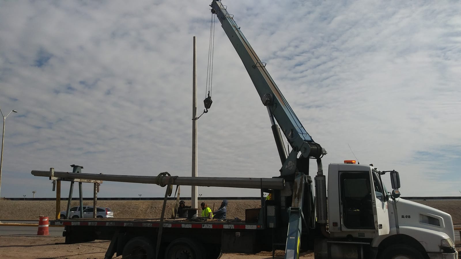 ??Nos dimos a la tarea de instalar un poste de 11 metros de altura, para lo cual nos apoyamos con la cuadrilla que se encarga de los trabajos pesados utilizando la grúa de fuerza?, explicó.