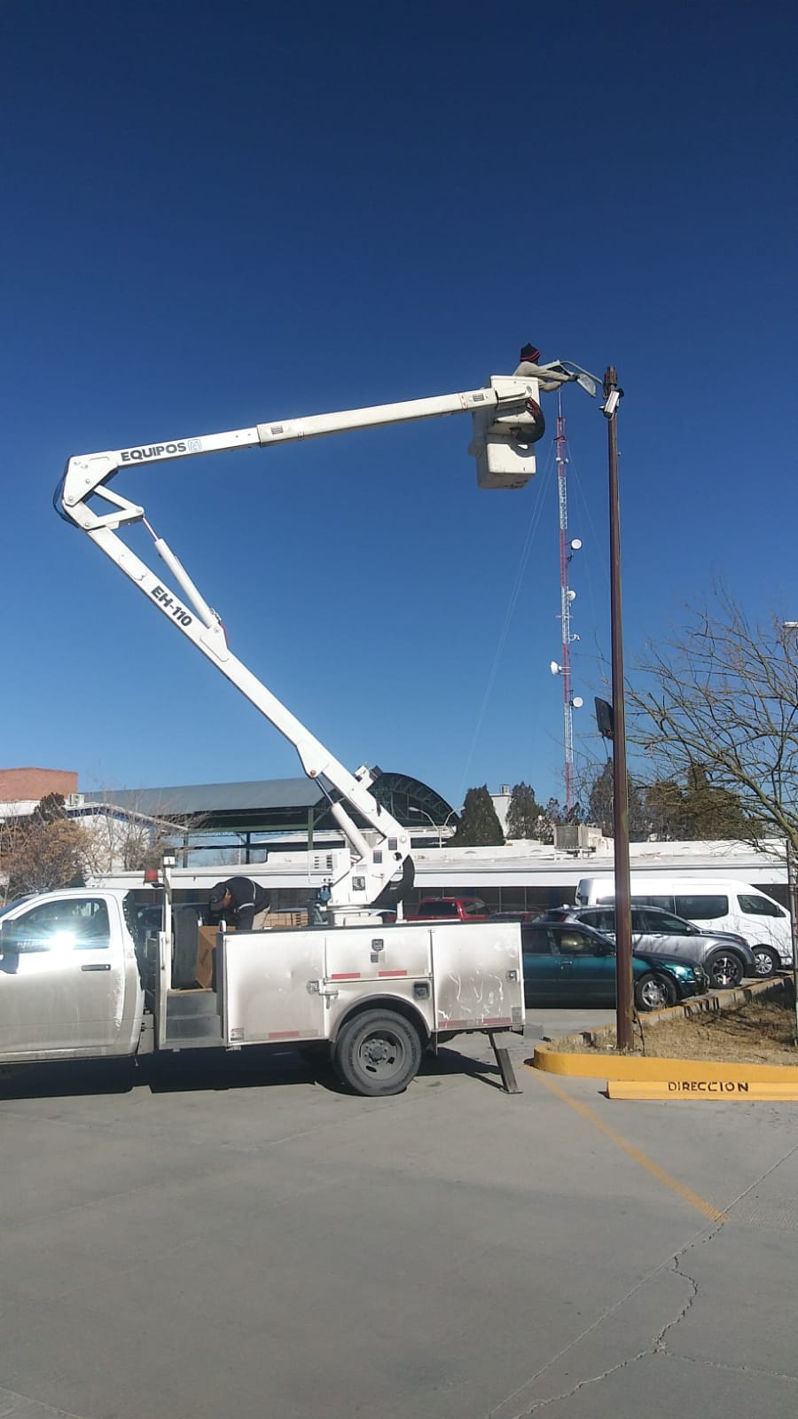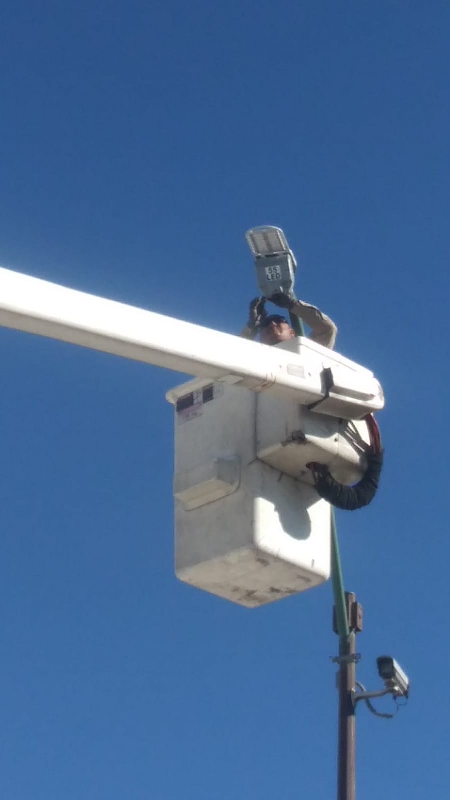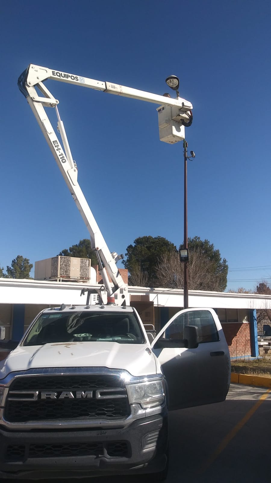 Personal de la Dirección de Alumbrado Público instaló 15 luminarias nuevas dentro de las instalaciones de la Universidad Pedagógica del Estado de Chihuahua, ubicada en la calle Camino Viejo a San José.