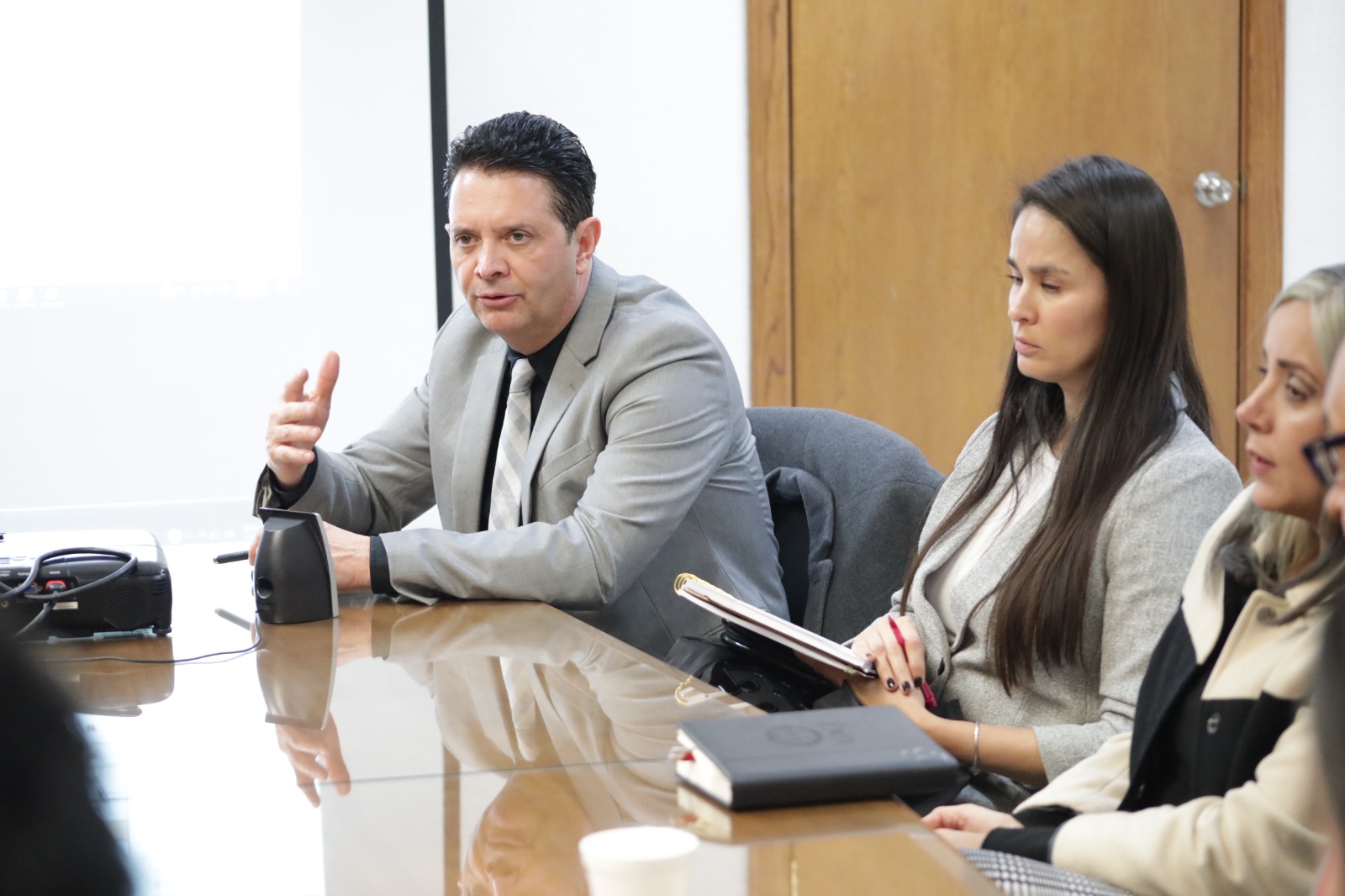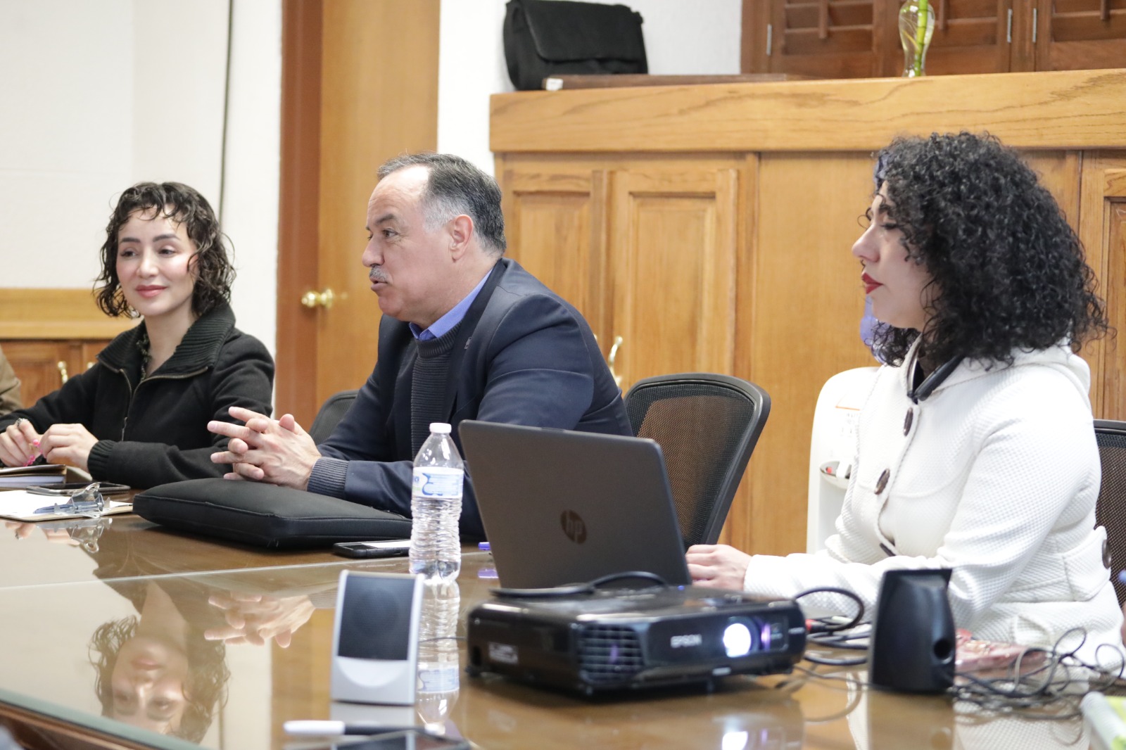 En la reunión estuvieron presentes Raúl Fajardo, director del Instituto Municipal de la Juventud; Omar Olivas y Mayra Marmolejo, de Servicios Estudiantiles de la UACJ; Tania Hernández, de Vinculación e Intercambio de la UACJ; Sergio Pacheco, del Instituto de Ciencias Sociales y Administración; Luis Aguilar, de la Coordinación de Asesores; además de Jesica Martínez y David Zuany del Instituto Estatal Electoral.