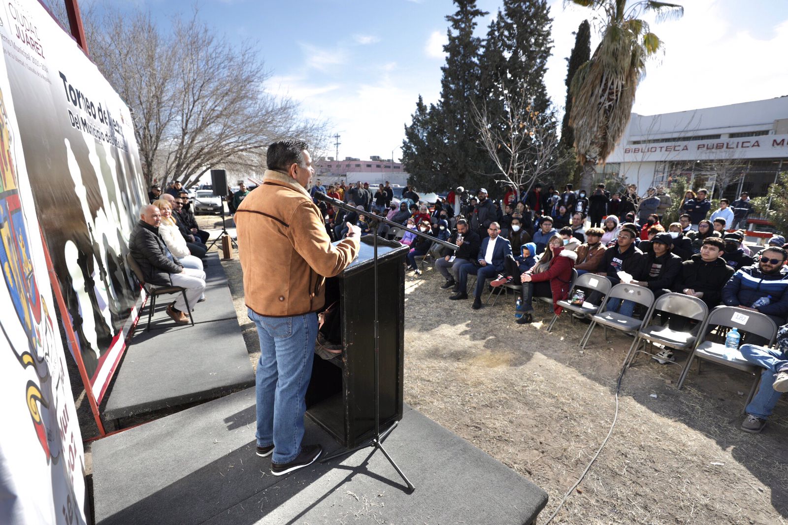 El Presidente Municipal, Cruz Pérez Cuéllar, inauguró esta mañana el Torneo de Ajedrez del Municipio 2023 por la "Medalla del Día de la Amistad", que se llevó a cabo en la Biblioteca Pública Municipal Benito Juárez y donde participan alrededor de 100 niños, jóvenes y adultos.