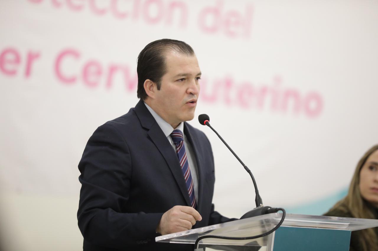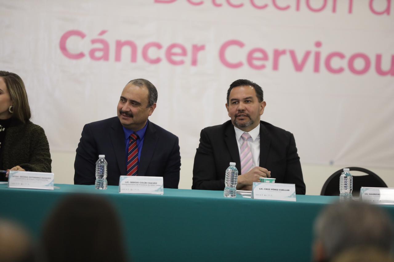 El Presidente Municipal, Cruz Pérez Cuéllar, participó en la ceremonia de arranque de la estrategia para la eliminación del cáncer cervicouterino, con la cual se busca implementar la prueba del virus del papiloma humano en 35 mil mujeres trabajadoras afiliadas al Instituto Mexicano del Seguro Social en Ciudad Juárez.