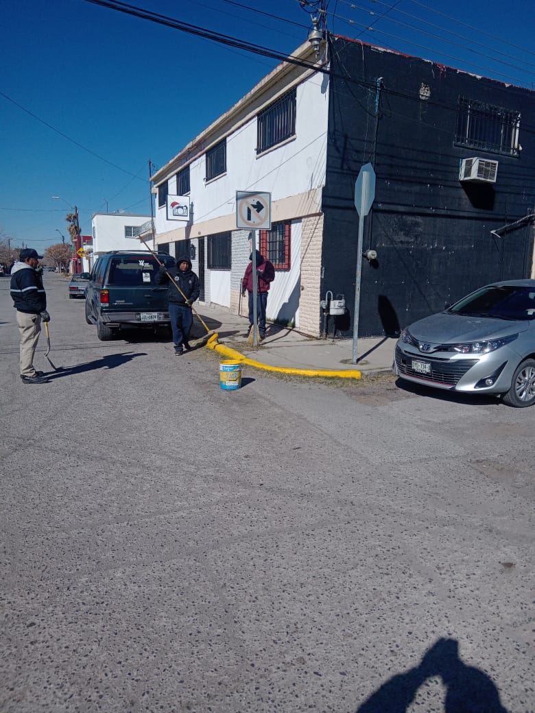 La Coordinación General de Seguridad Vial, por medio de personal adscrito al área de Control de Tráfico, realizó trabajos de aplicación pintura para detallar los bordes de banqueta de las calles Juan Escutia y 20 de noviembre en la colonia Silvia´s, lugar donde se ubica la Casa del Menor Migrante.
