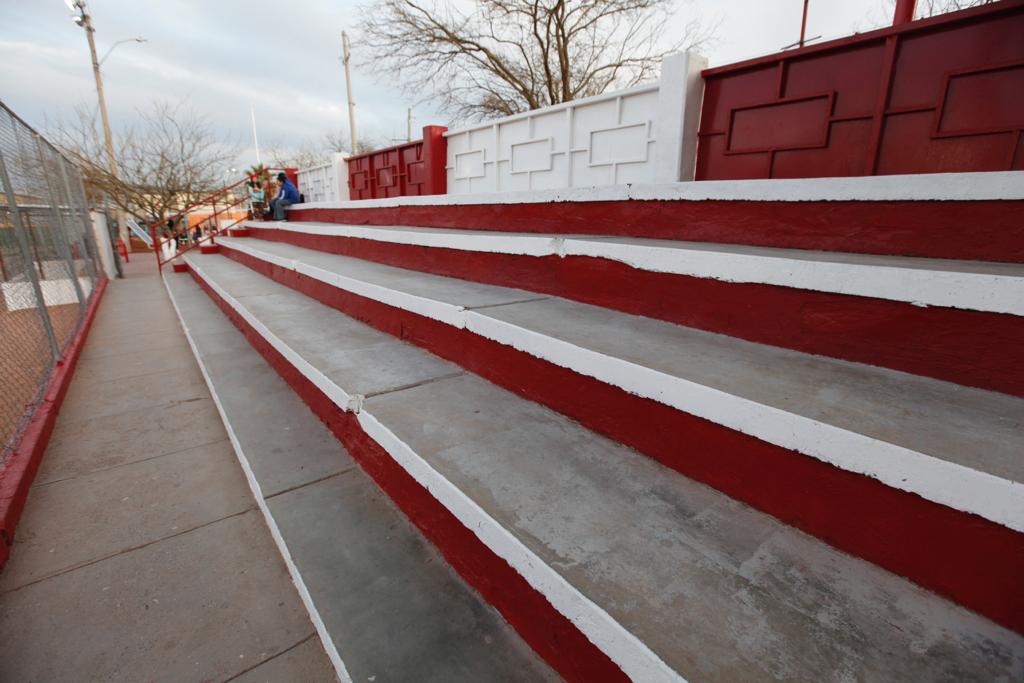 En este lugar se destaca la instalación de 26 luminarias tipo led, mantenimiento a 12 reflectores, limpieza general, retiro de grafiti y pintura en bardas, gradas, canchas y juegos.
