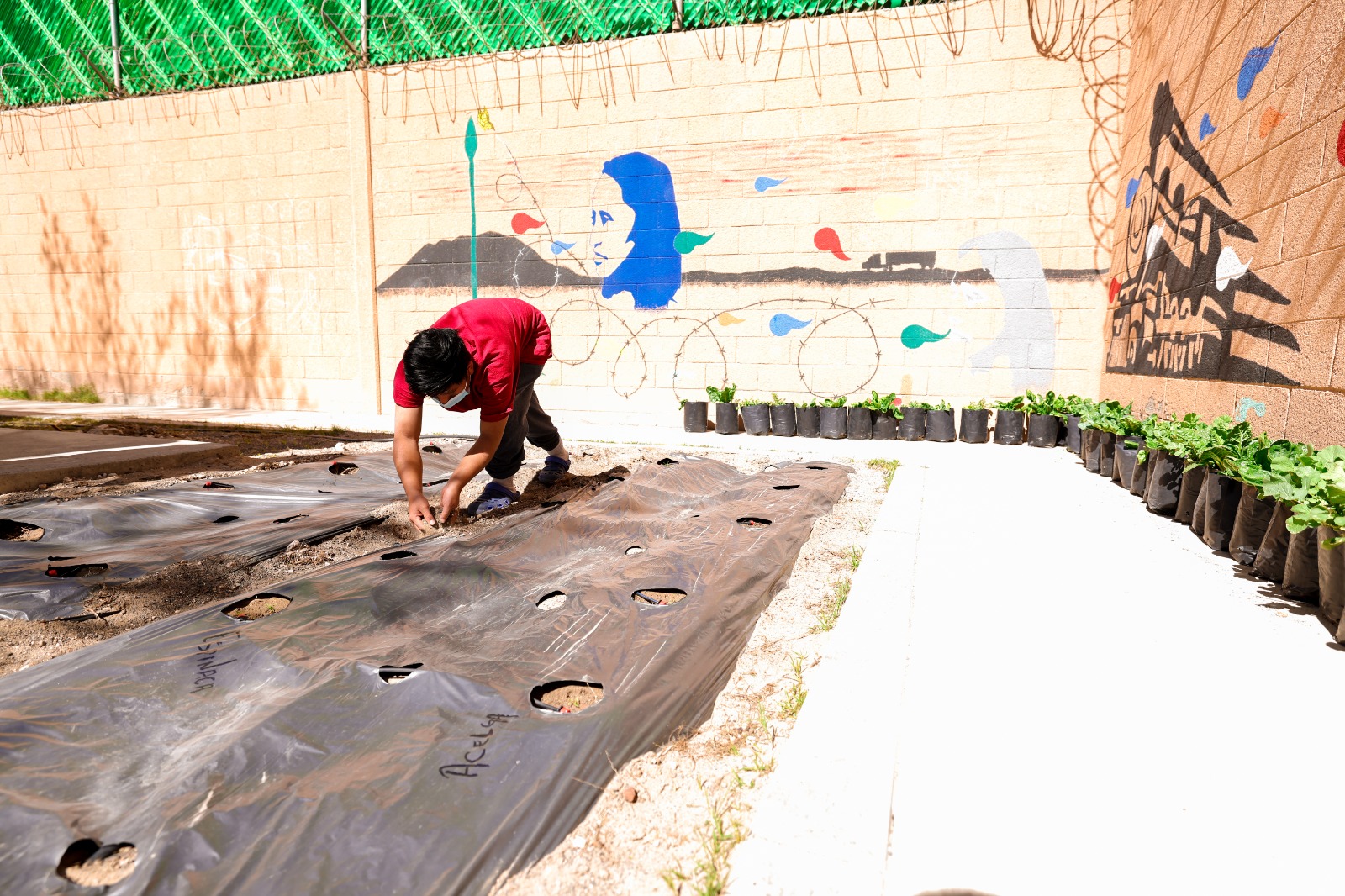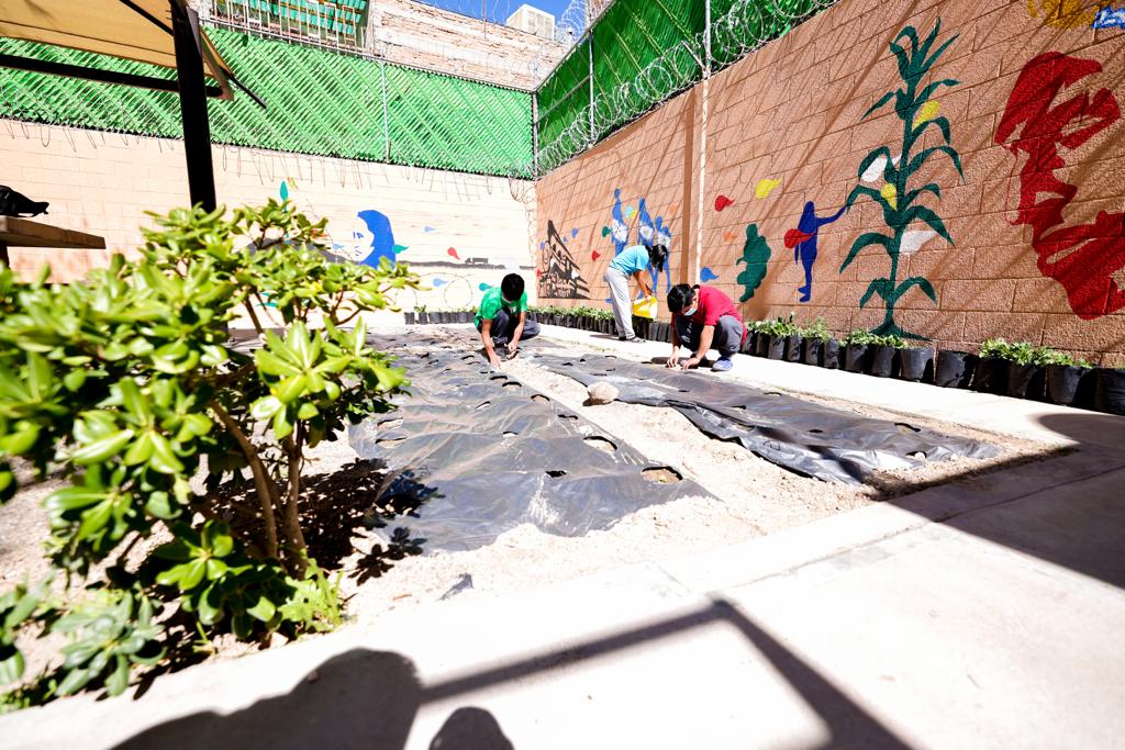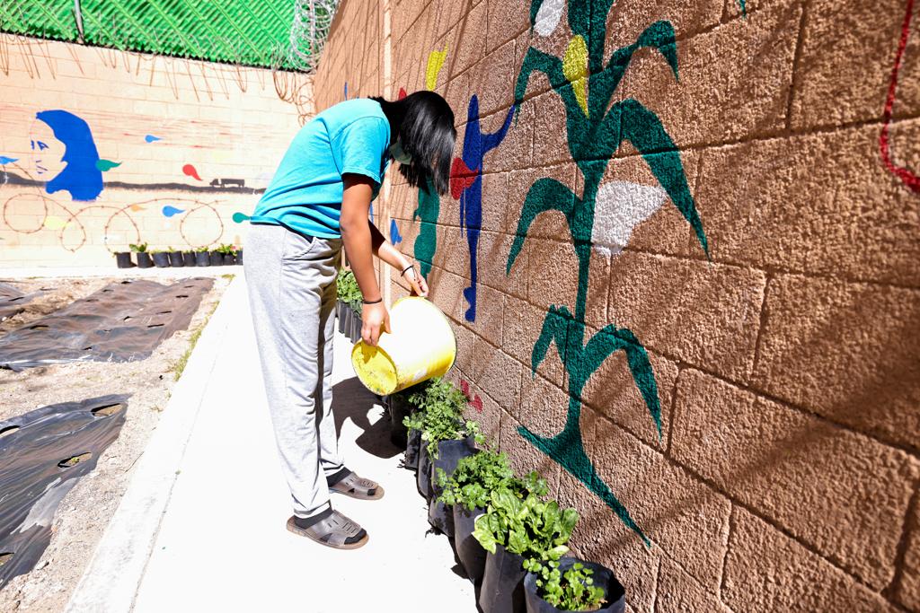 Gracias a la intervención de la Dirección de Desarrollo Rural, el Albergue México mi Hogar dependiente de DIF Municipal Juárez, que aloja a niñas, niños y adolescentes en situación de tránsito migratorio, se cuenta con un huerto urbano propio en el que siembran y cosechan diversas hortalizas, impulsando el trabajo en equipo y generando conciencia del impacto ambiental.