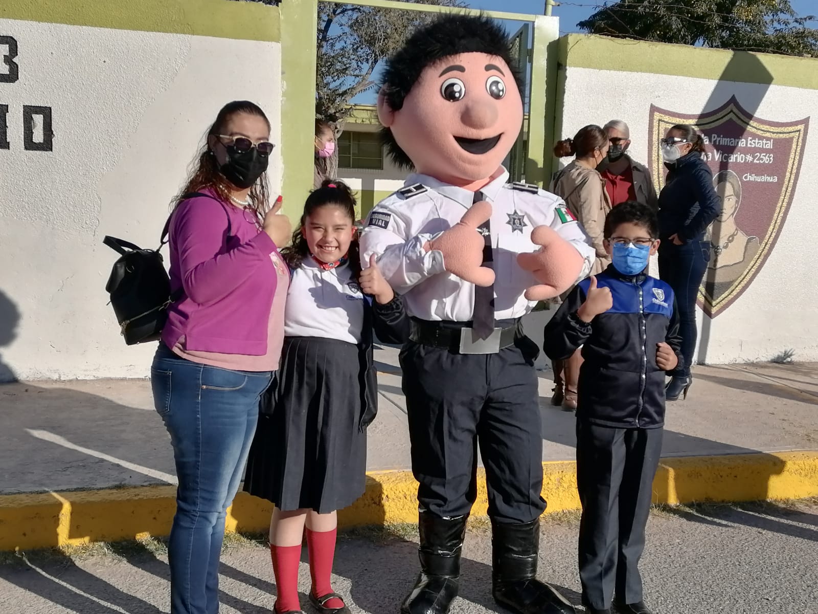A la institución educativa también acudió una cuadrilla de Limpia de la Coordinadora del Suroriente, misma que apoyó con la limpieza de las áreas aledañas y el retiro de maleza. De igual forma se hizo presente la botarga de Seguridad Vial, lo que alumnos aprovecharon para tomarse una fotografía.