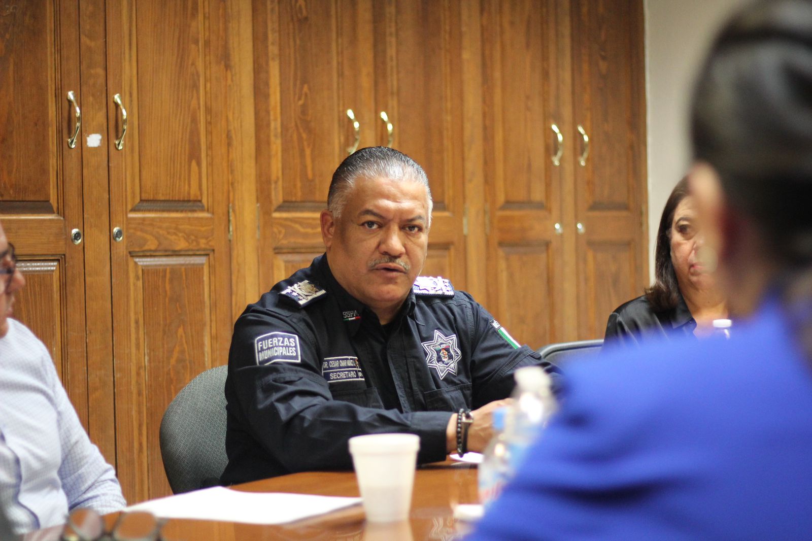 El secretario de Seguridad Pública Municipal (SSPM), César Omar Muñoz Morales participó hoy en la reunión ordinaria de la Comisión Edilicia para la Atención de los Derechos Humanos y Grupos Vulnerables, que coordina el regidor Jorge Marcial Bueno Quiroz, en donde el funcionario dio a conocer la intervención de la PolicÃa Municipal con los migrantes.
