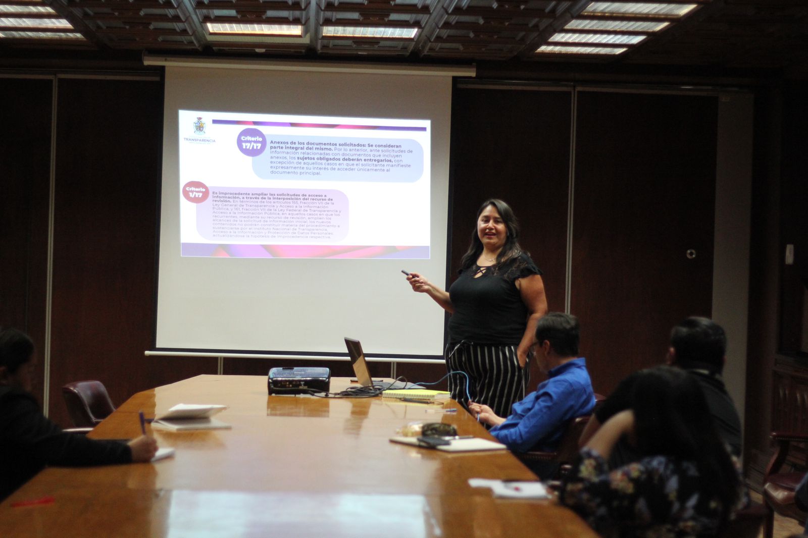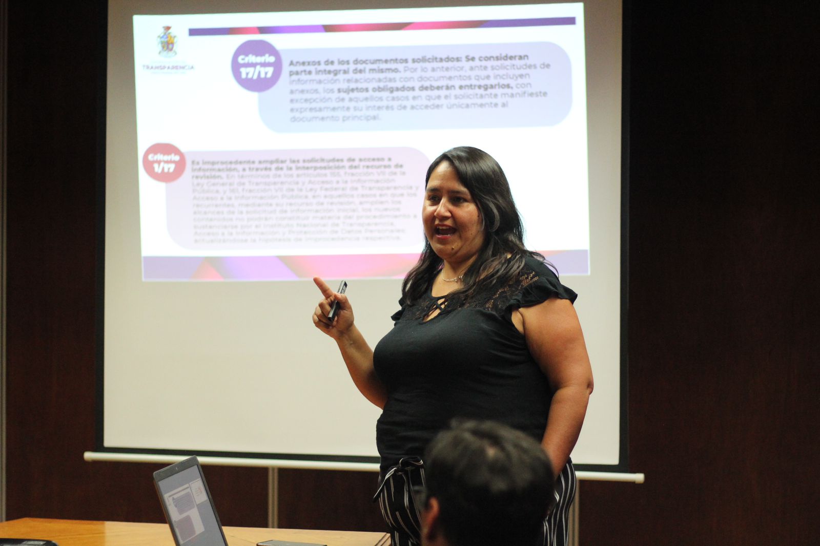 La ponente instó a los asistentes a analizar exhaustivamente la información solicitada y determinar lo antes posible la competencia de la misma. Además, explicó los diferentes plazos de ley que el sujeto obligado y el personal municipal está obligado a cumplir.