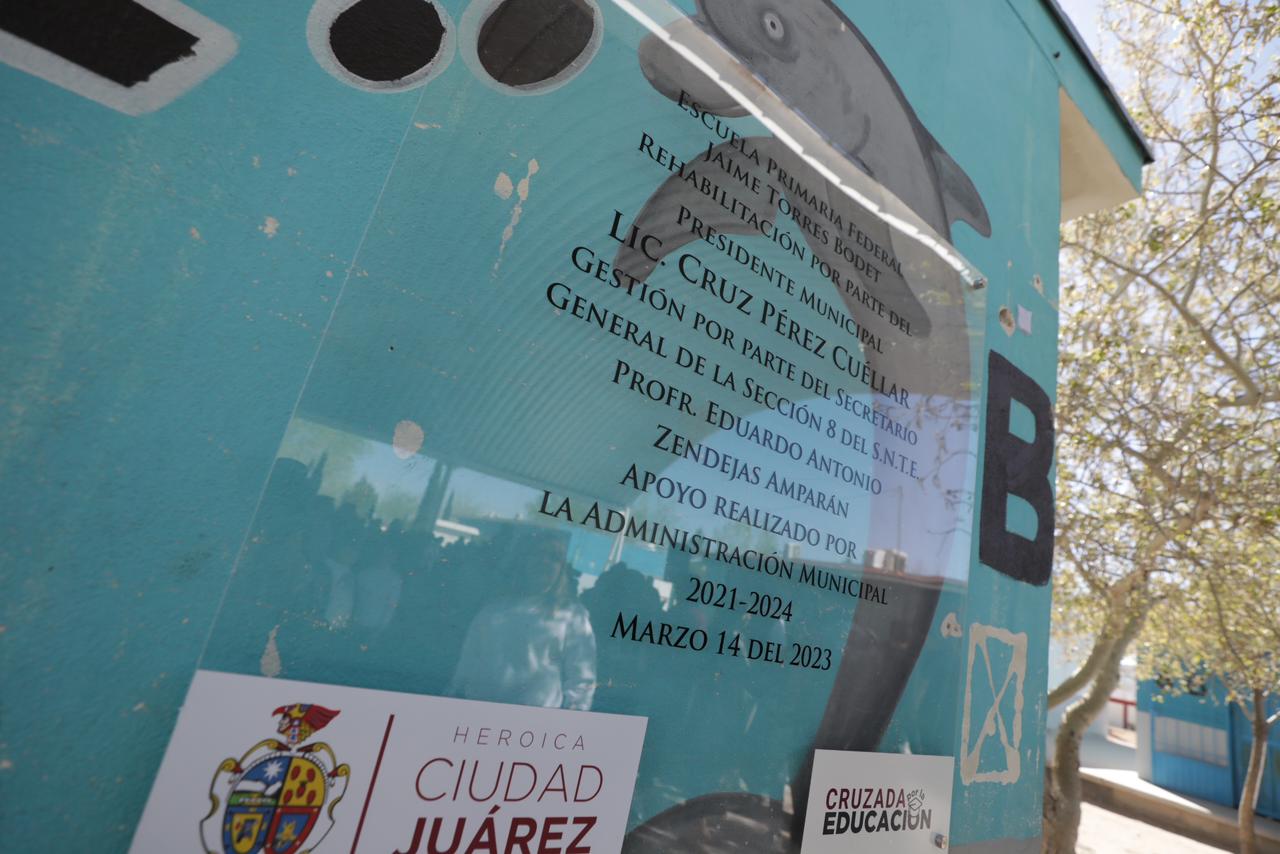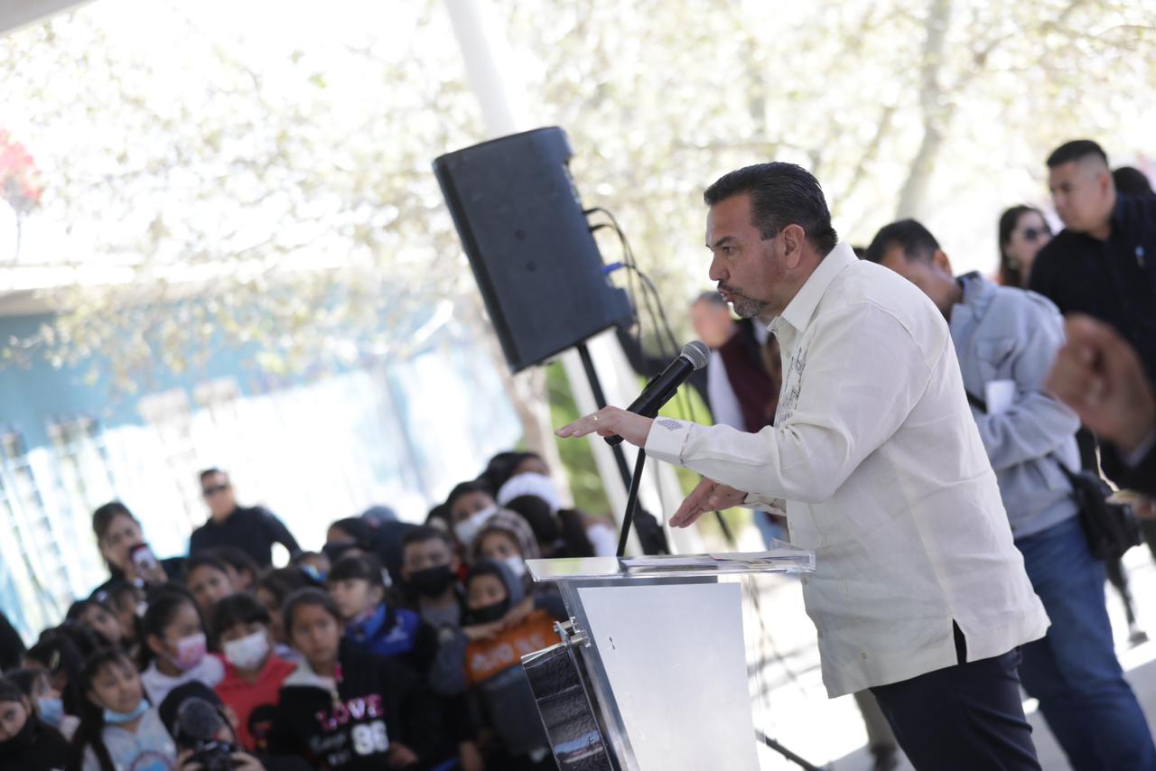 Durante la entrega de obras de rehabilitación en la Escuela Primaria Jaime Torres Bodet, el Presidente Municipal, Cruz Pérez Cuéllar, reiteró su compromiso de seguir apoyando la educación pública, ya que esto permite igualar oportunidades.