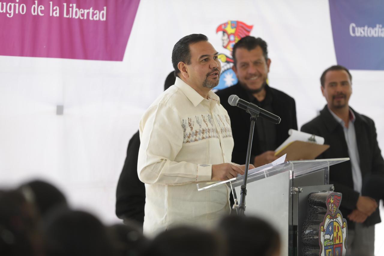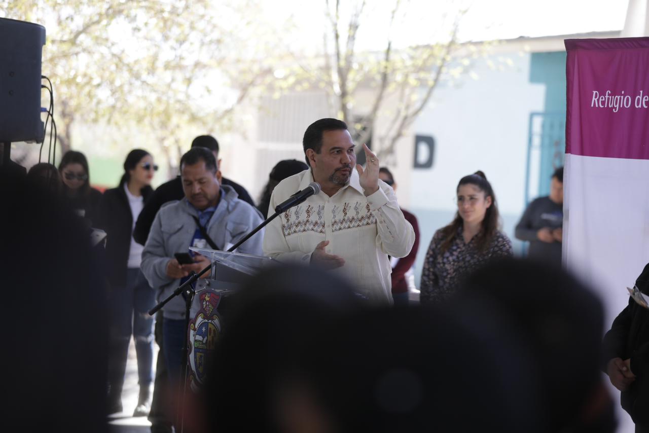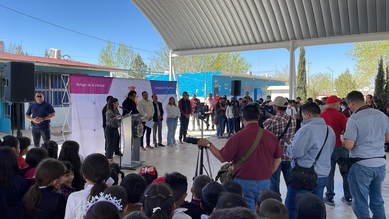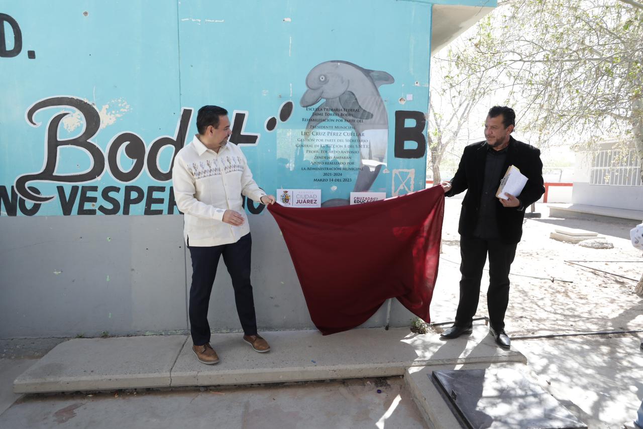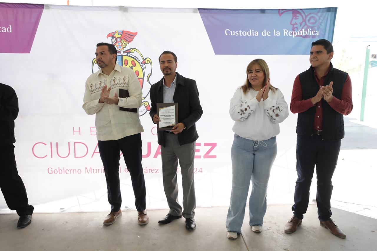 "Gracias por brindarles esa seguridad a los alumnos y por ese gran compromiso con la niñez juarense", indicó, luego de entregarle un reconocimiento al Presidente Pérez Cuéllar.