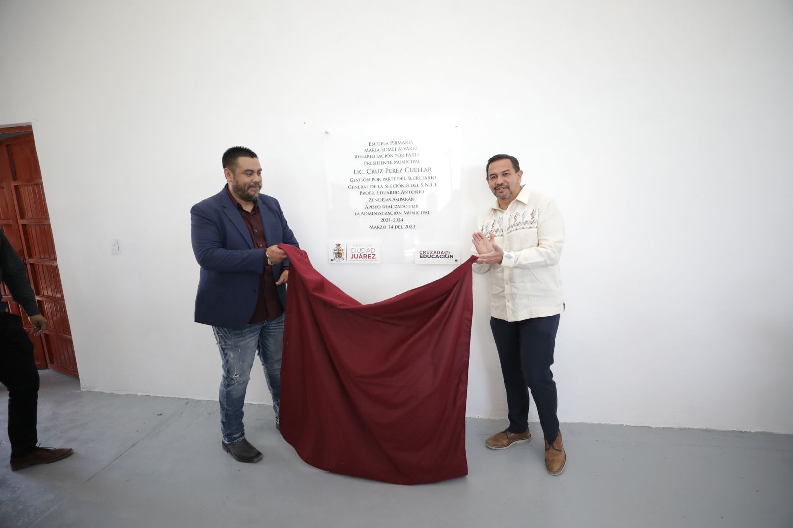 El Presidente Municipal, Cruz Pérez Cuéllar, señaló que sigue comprometido en la rehabilitación de escuelas y entrega de domos porque invertir en la educación, es invertir en los niños juarenses.