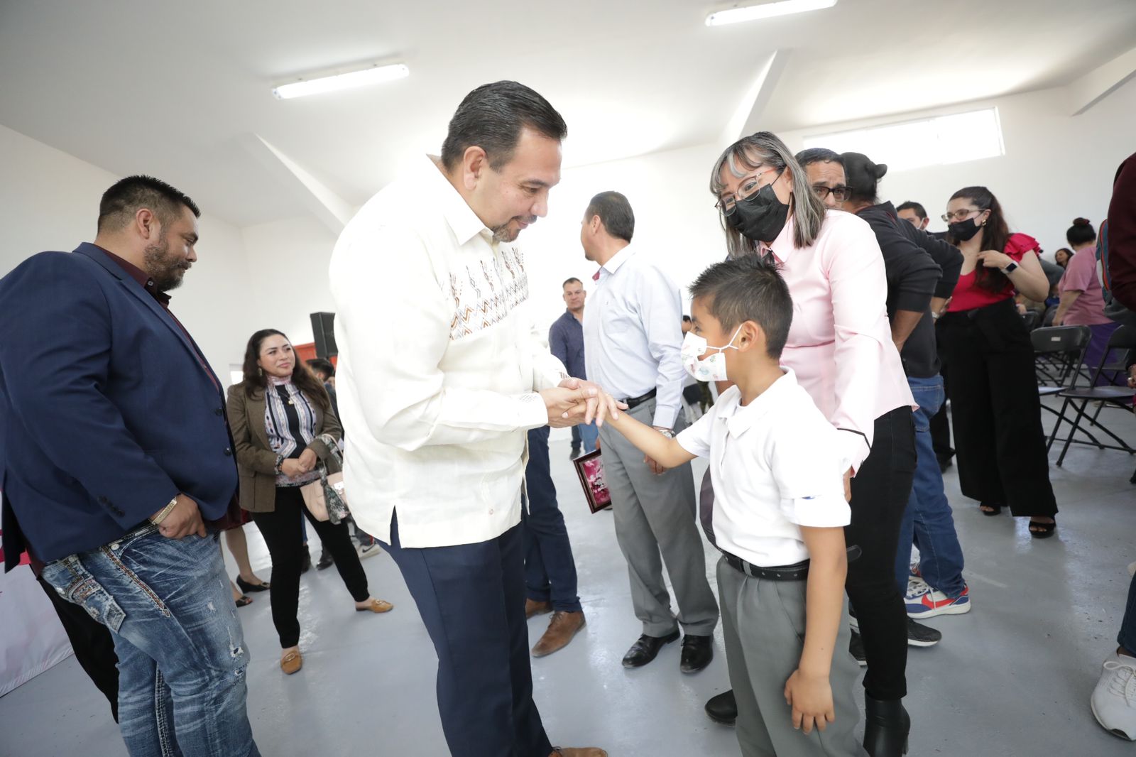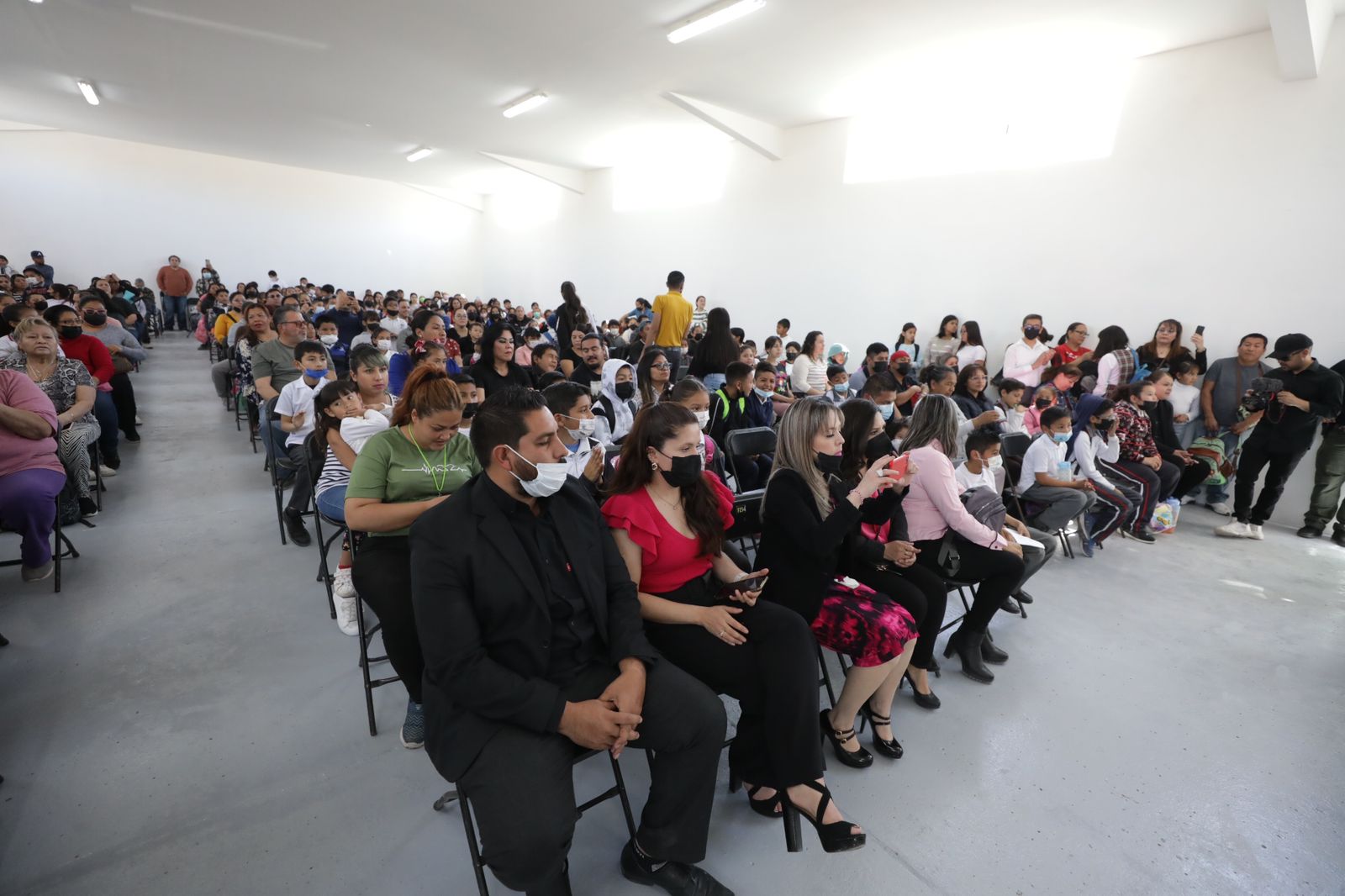 Padres de familia, docentes y alumnos de la Escuela Primaria María Edmée Álvarez, agradecieron al Presidente Municipal, Cruz Pérez Cuéllar por su intervención para la creación de un auditorio con una capacidad superior a las 300 personas.