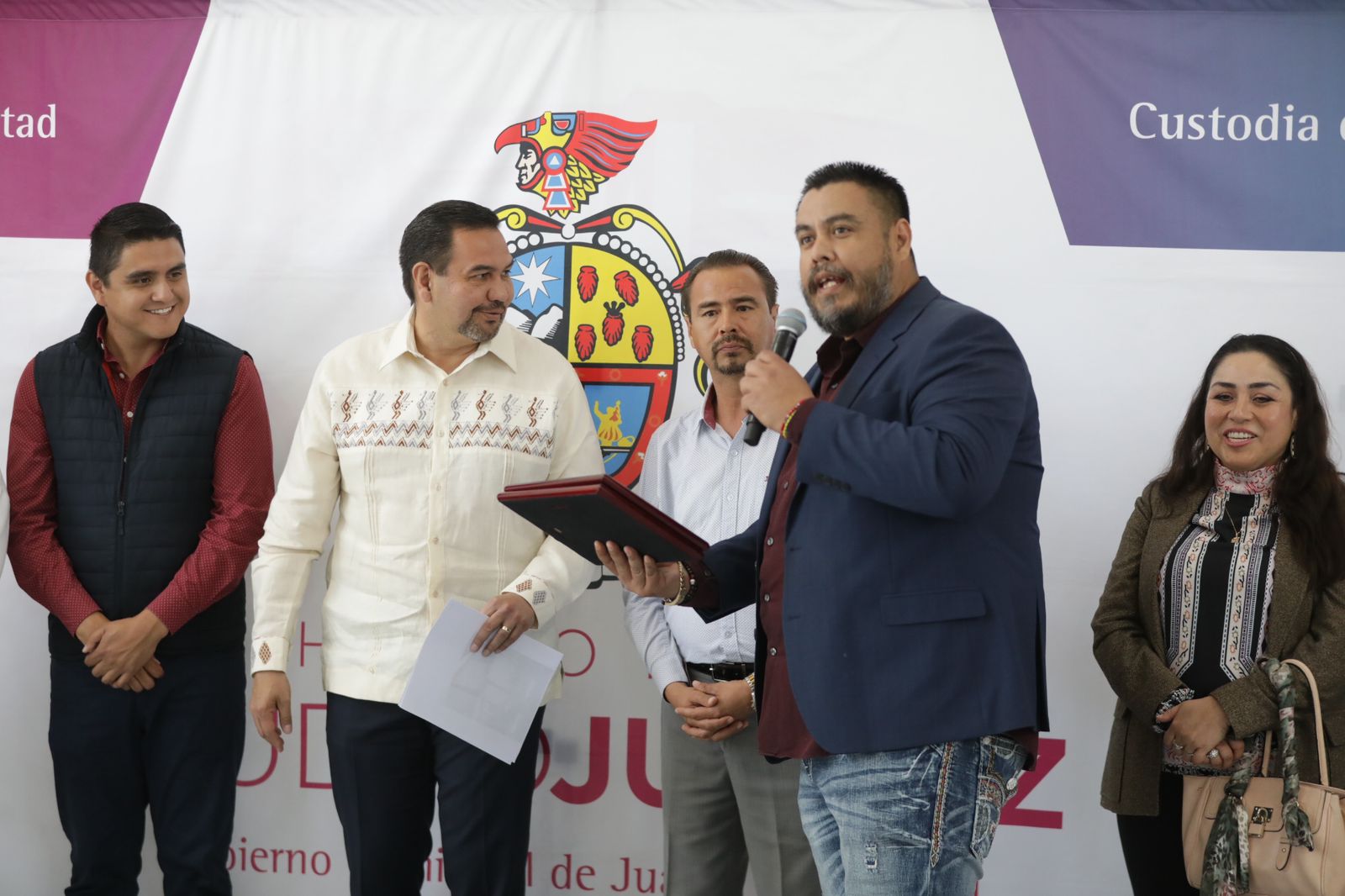 Como parte de la entrega de estas obras, el alcalde presidió la inauguración oficial con un corte de listón y la develación de una placa, además de recibir un reconocimiento por parte de los directivos de la institución.