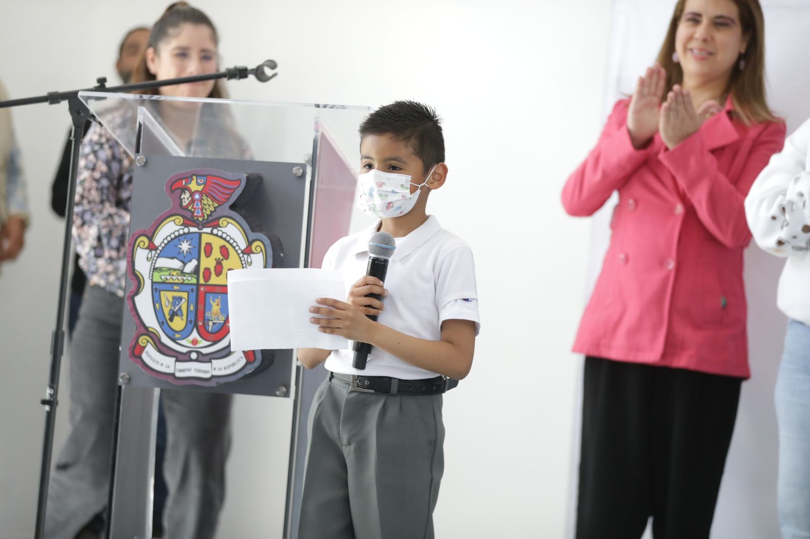 ??Quiero agradecerle por su colaboración para concluir la obra de nuestro auditorio, que será un espacio digno y seguro para realizar diferentes actividades educativas y culturales?, destacó el alumno Fernando Antúnez, de segundo grado de primaria.
