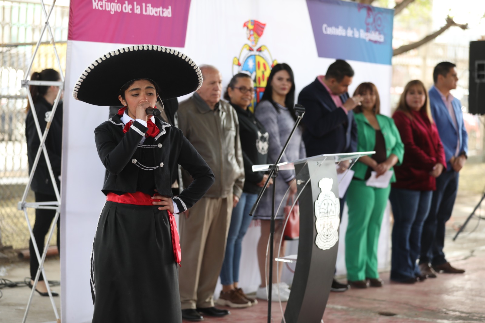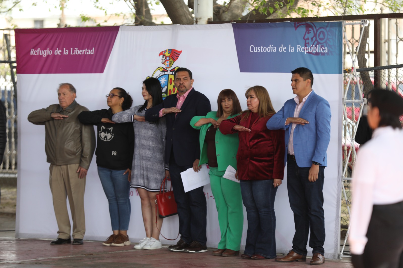 Durante el evento se llevaron a cabo honores a la bandera. Ahí estuvieron el coordinador de Administración Municipal, Ismael Rueda; la directora de Educación Municipal, Martha Aracely González Holguín; la regidora Austria Galindo y el supervisor de la Zona 1, Armando Mendoza Méndez.