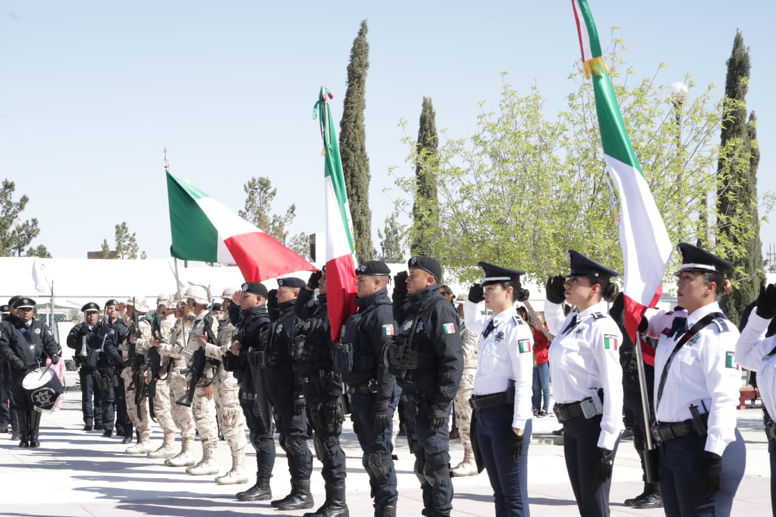 En la ceremonia oficial estuvieron el Coronel de Infantería Marco Antonio Álvarez Castañeda, comandante del 31 Batallón de la Guardia Nacional y representante de la Coordinación Estatal Chihuahua de la Guardia Nacional; el General de Brigada Diplomado de Estado Mayor, Jorge Alberto Buchan Martínez, Comandante de la Guarnición Militar de Ciudad Juárez; el Coronel de Caballería Diplomado de Estado Mayor Sergio Flores Vega, Comandante del Noveno Regimiento de Caballería Motorizado y Elizabeth Guzmán Argeta, directora regional de los programas para el Desarrollo de la Secretaría del Bienestar.